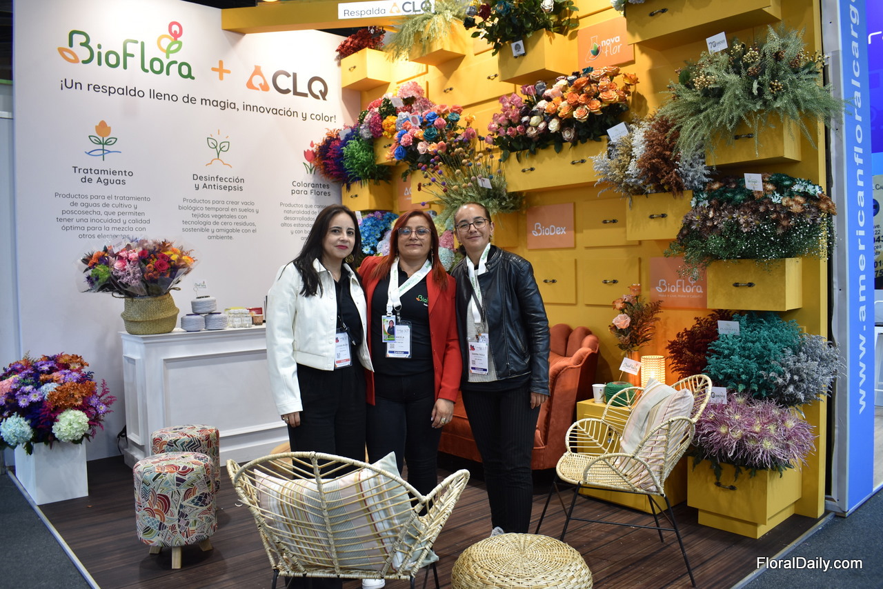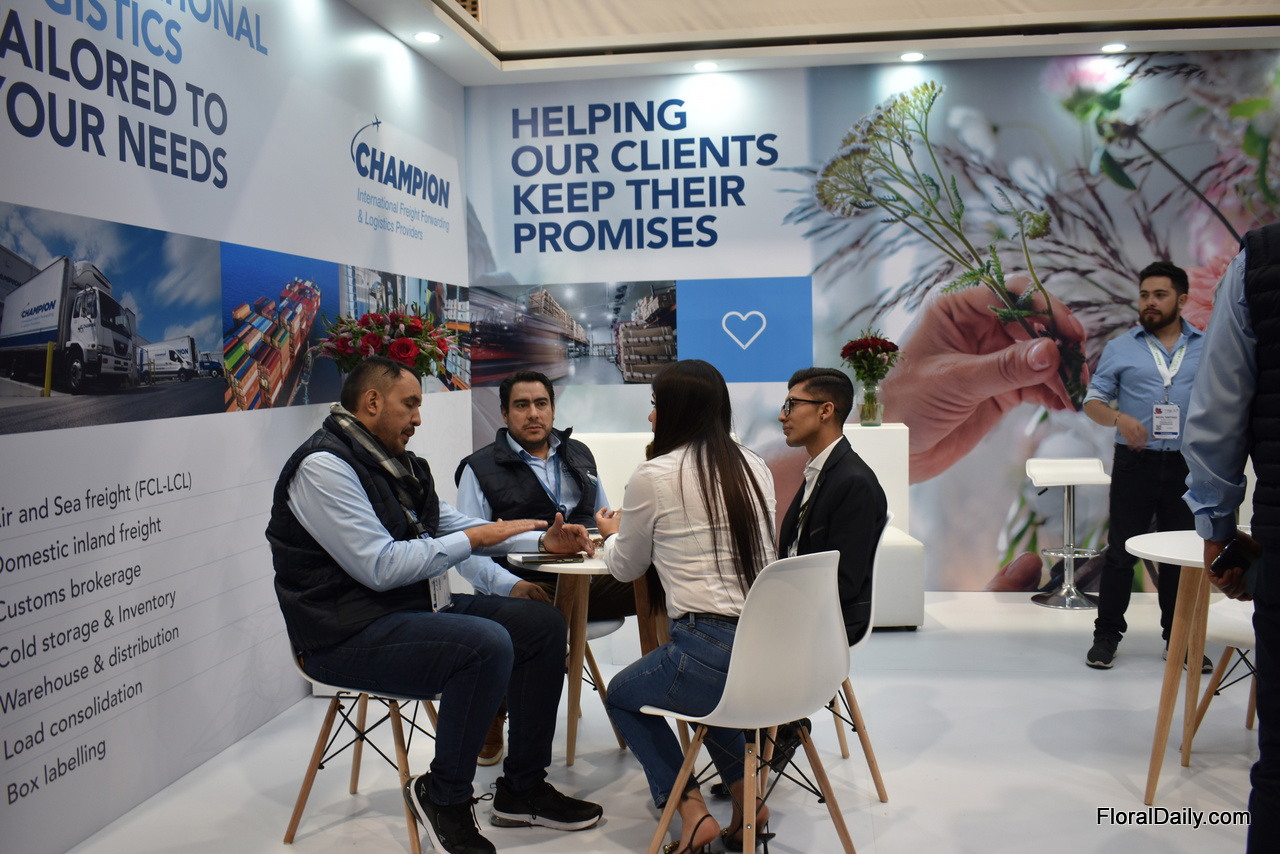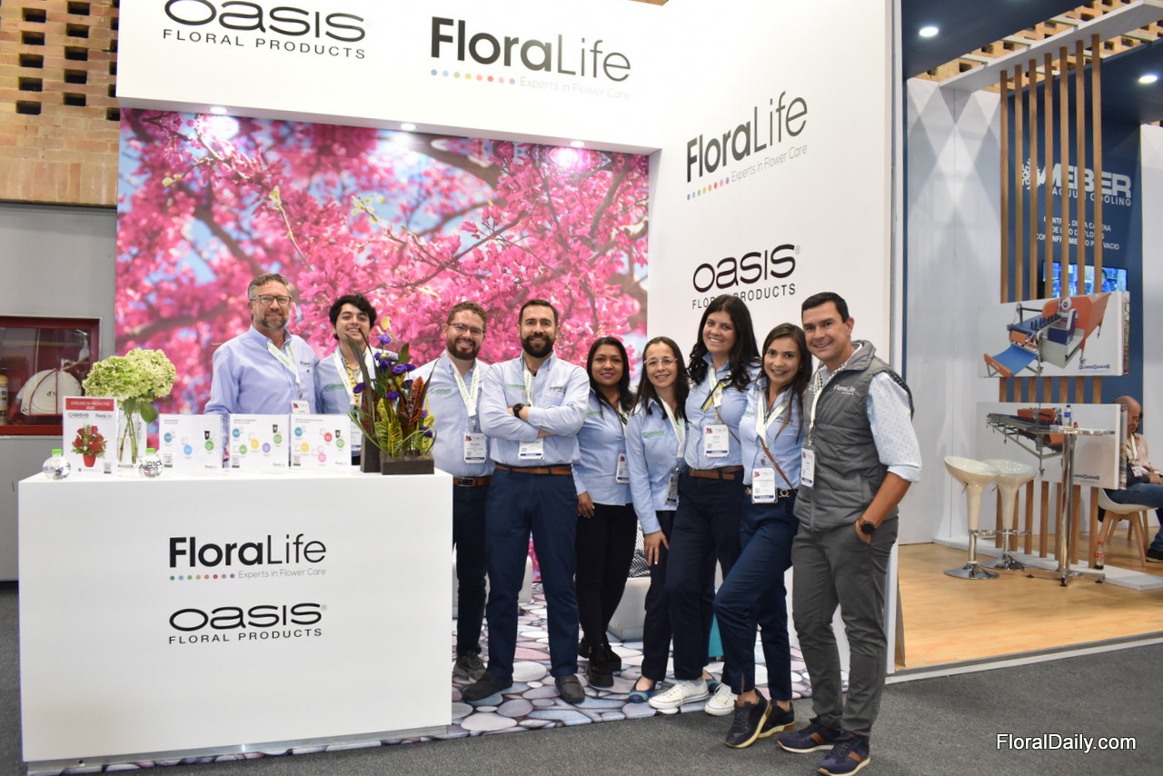 The team of FloraLife, promoting their sea freight shipment protocol, their new catalog of Oasis floral products and the Ethelred sensitive treatment products.