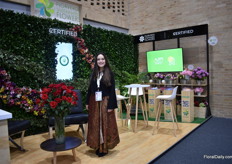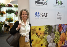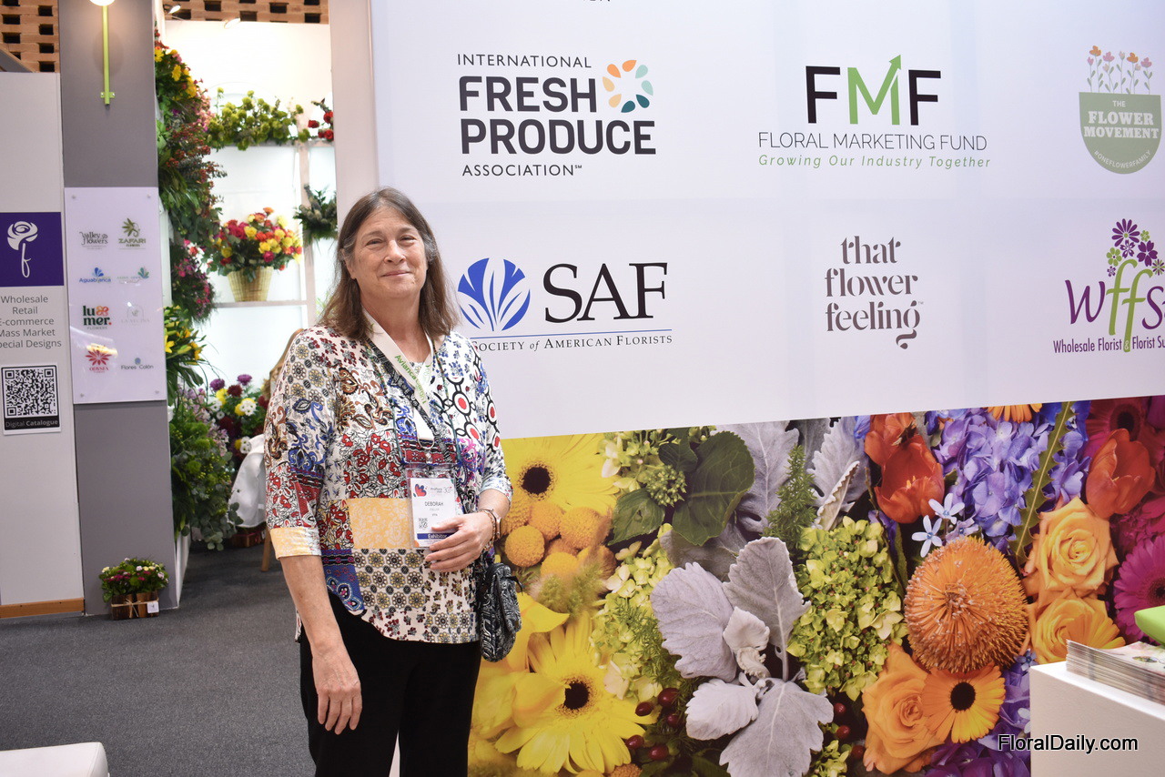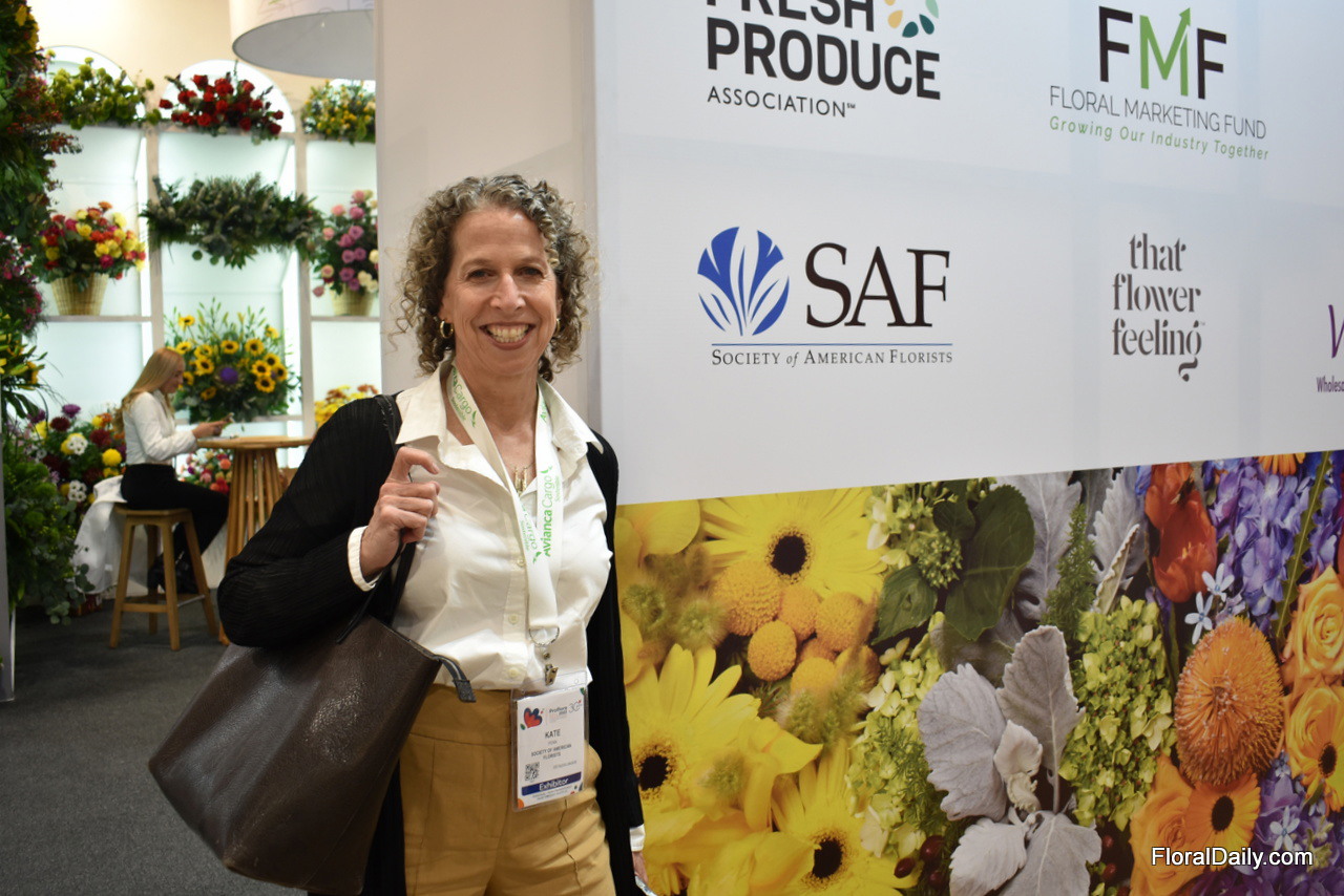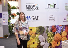 Kate Penn of SAF at the United States booth, including among others WFFSA. That Flower Feeling, AFE, SAF IFPA, AFIF and more.