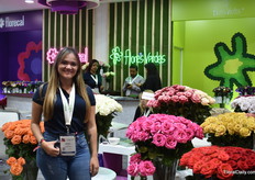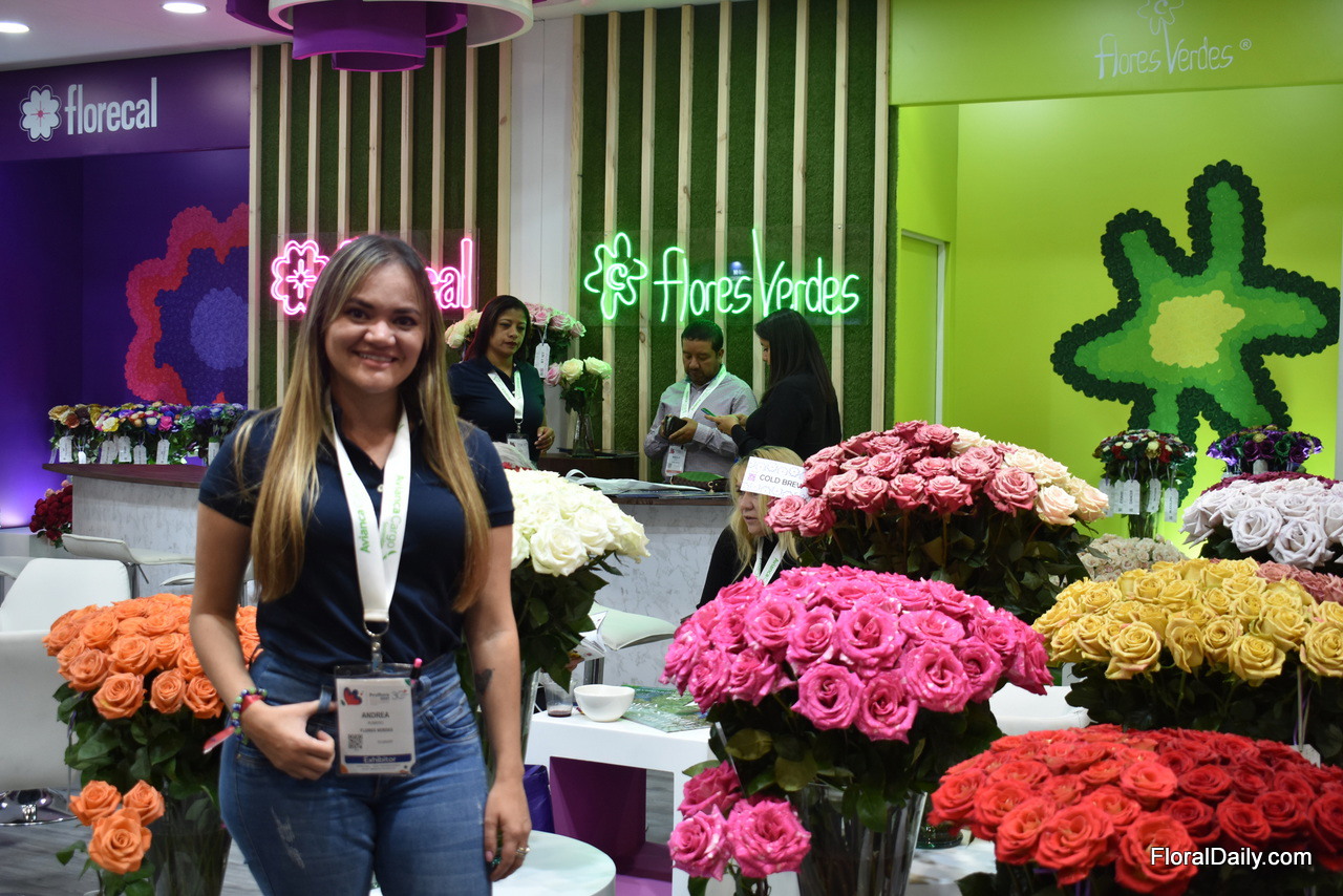 Andrea Romero of Flores Verdes, an Ecuadorian farm growing roses, spray roses and garden roses. They also offer dyed roses.