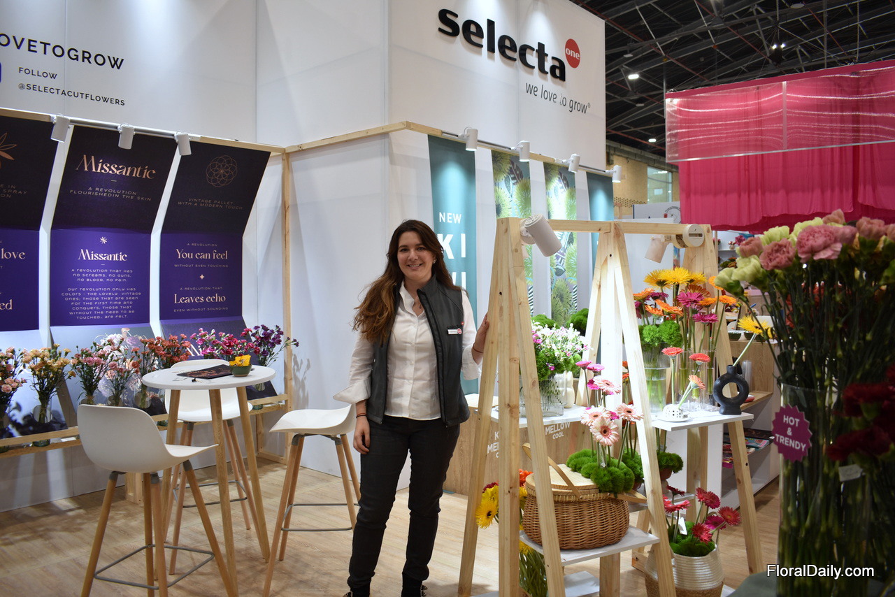 Daniela Navarro of Selecta Cut Flowers. They have a new assortment of gerberas and a new carnation filler inspire collection, named the Solandis Sweeties collection. They both are launched at Proflora.