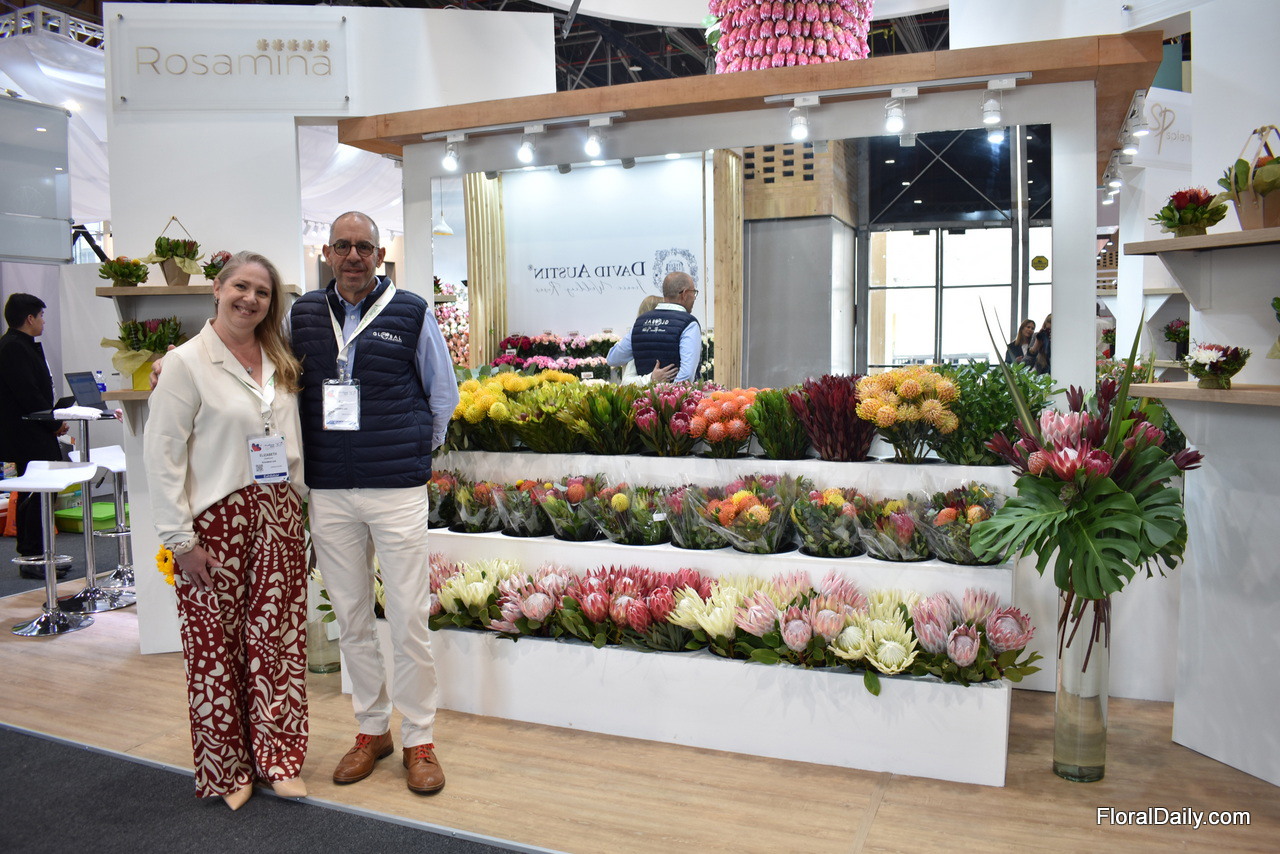 Elizabeth Zambrana and Eli Perez of Rosamina, a grower of proteas and foliage, but also make bouquets and arrangements with third party products.