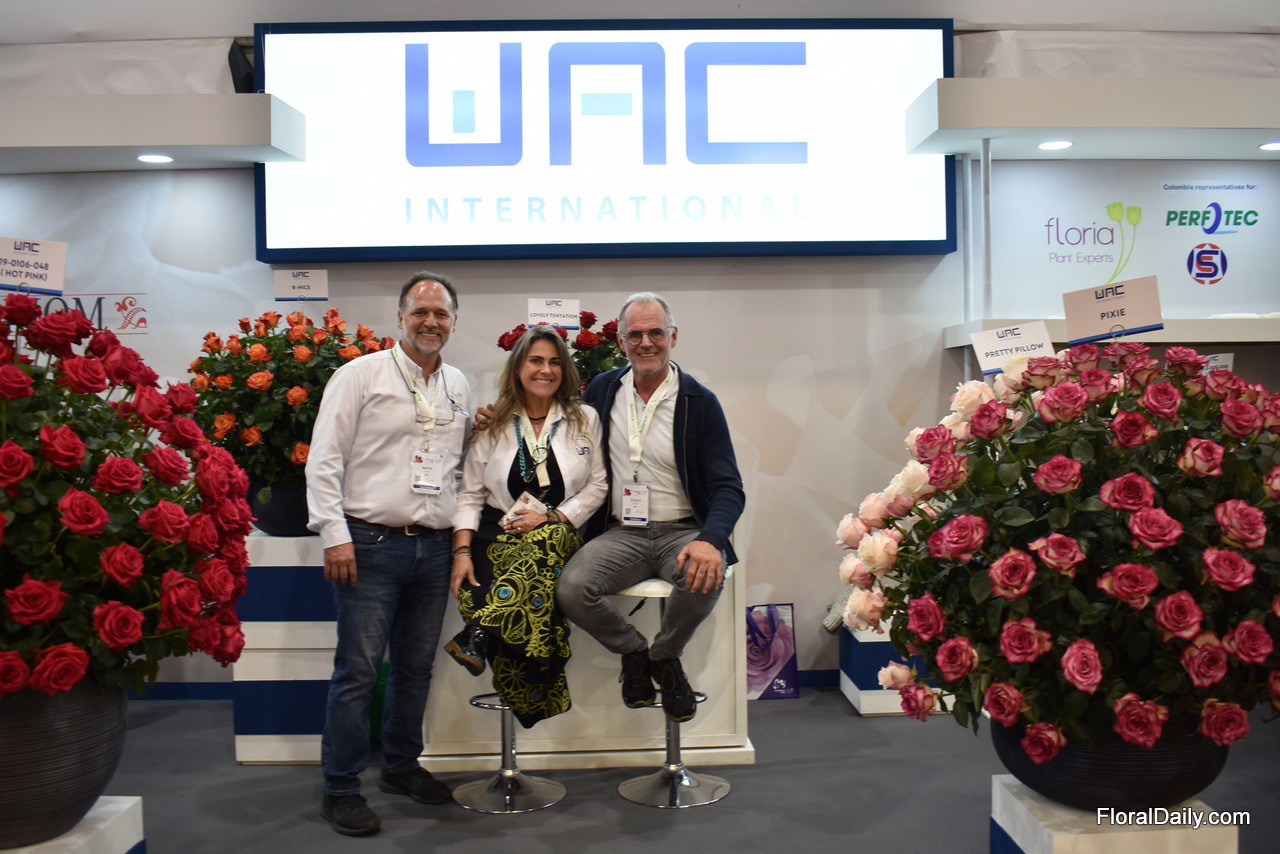 Martin Yepes, Tina Maya and Jaap Stelder of WAC. Yepes and Maya represent WAC, Perfotec and Steenvoorde in Colombia and Ecuador with their company Floria Plant Experts.