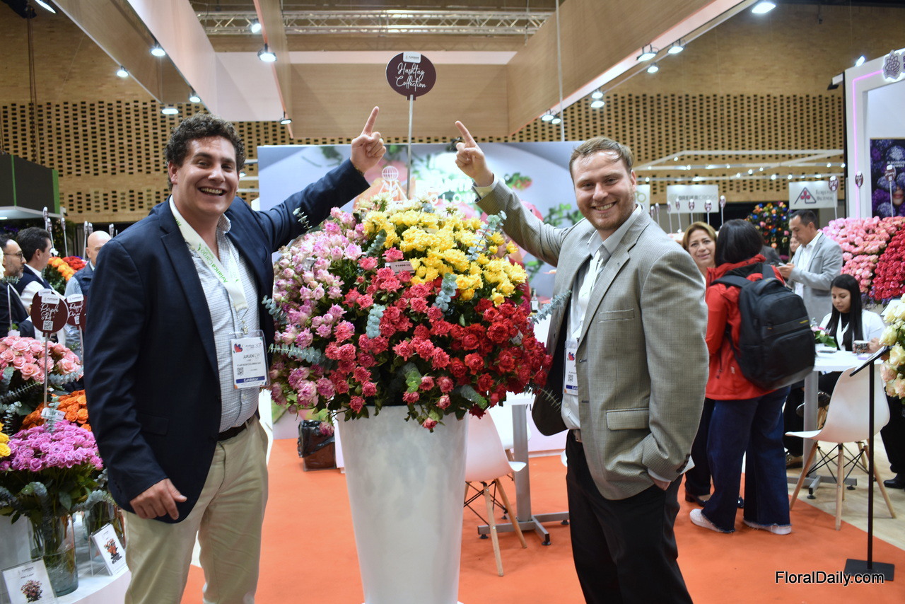 Jurjen Ilsink of Interplant and Aviram Krell of Plantador Colombia presenting the  Hashtag collection, which received a lot of attention at the show. It is bred by Interplant and Plantador is showing it for the first time in Latin America. According to them, Inspiration,  innovation and differentiation, is what this collection is all about.
