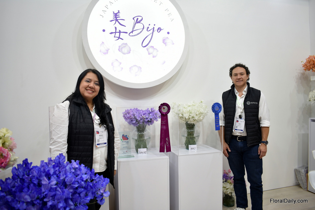 Monica Miranda and Camilo Camargo of Ikabana, growing Japanese varieties of Sweet pea (Brand Bijo) growing in Colombia. They started this project 3 years ago and are exporting then for about 6 months now. Later more on this on FloralDaily. At the show, they won 2 awards, for Sumire and Yuki.