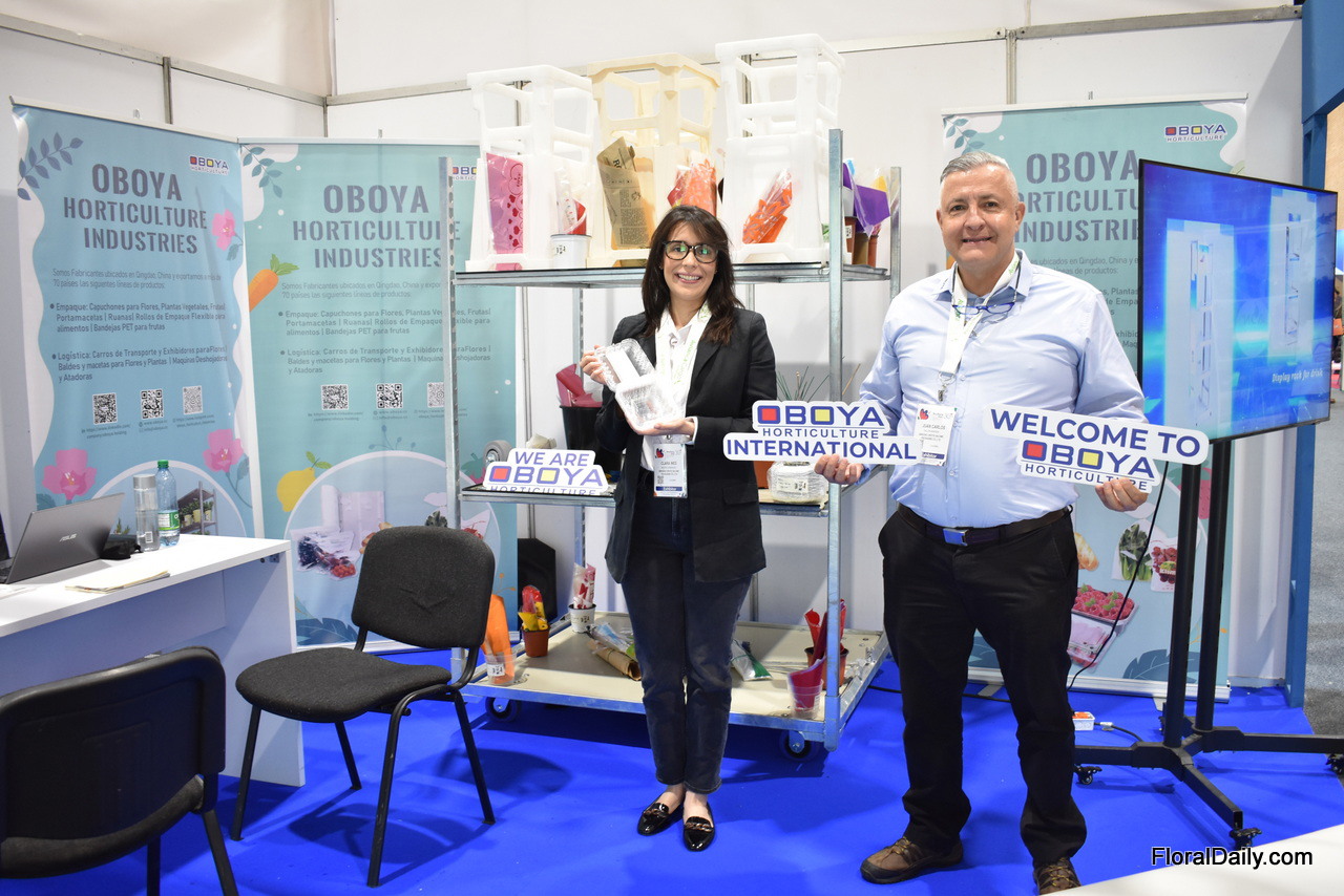 Clara Malpica and Juan Carlos Gallón of Oboya South America. In Colombia, many of the large flower growers do not only grow flowers they also grow blueberries . Oboya now also manufactures clamshells so they can supply the growers for both industries.
