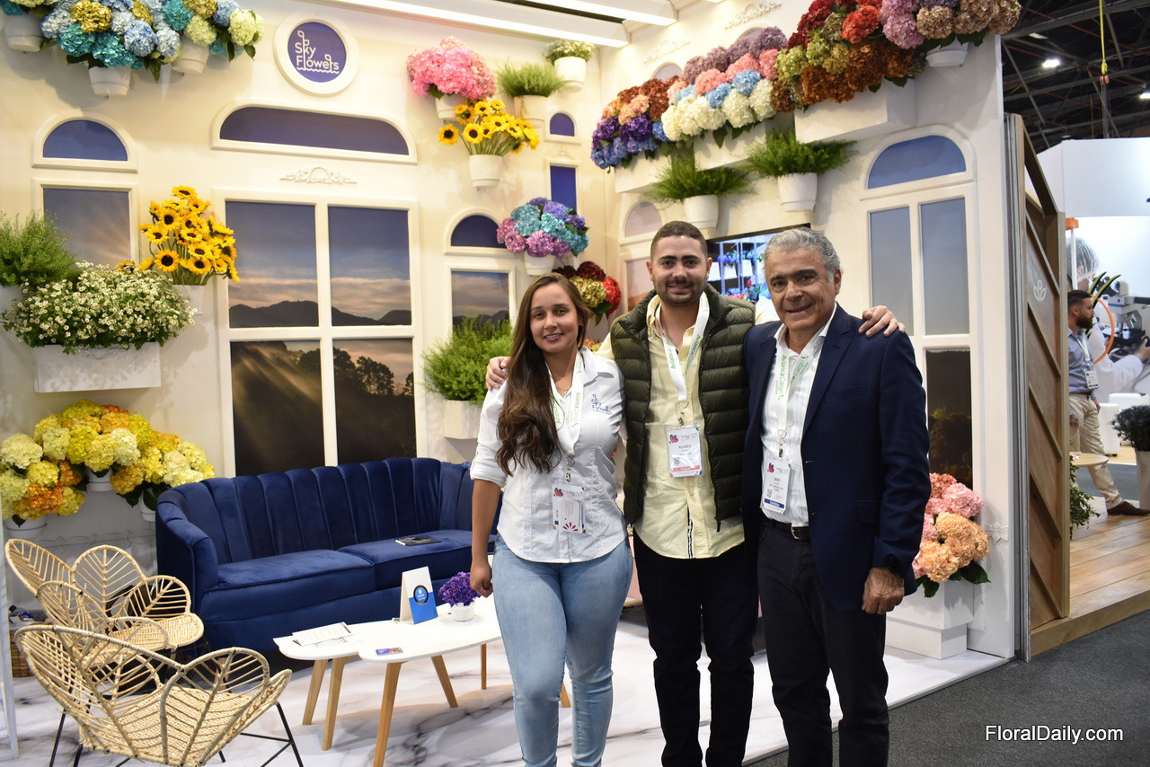 The team of SkyFlowers, they grow plants in the mountains of Antioqua. They mostly grow hydrangeas and they have the techniques to dye the flowers and give colors according to the seasons. They also grow other types of flowers like fillers like Matricaria and Lipidium. They also grow sun flowers. They ship mainly to the USA, Russia, Holland and Canada.