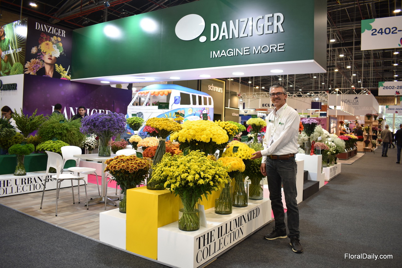 Diego Cardona of Danziger next to to their chrysanthemum assortment.