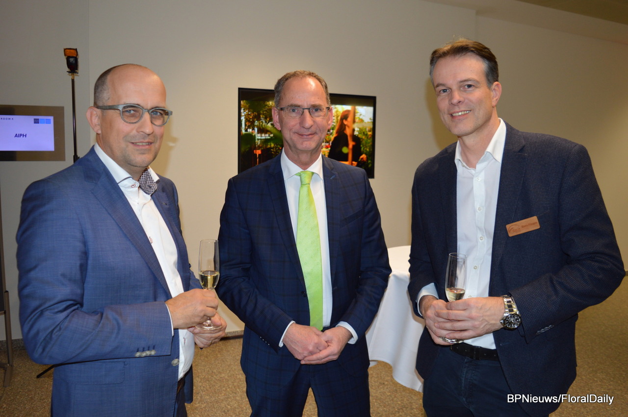 Willem Snoeker of Interpolis, Bernard Oosterom, president AIPH, and Coen van Ruiten of the HAS Den Bosch