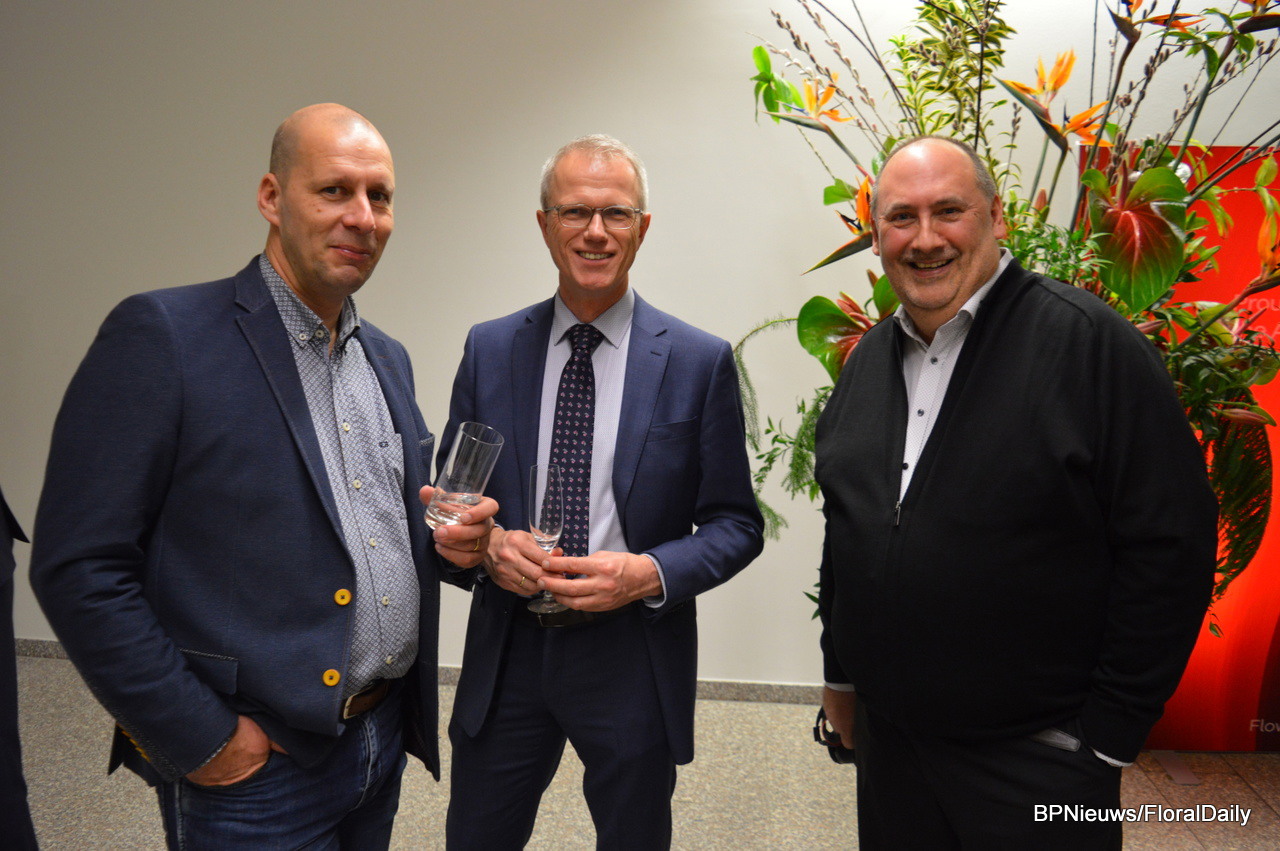 Jack Goossens, Decorum & chairman of the Supervisory Board at Royal FloraHolland, Peter Bakker, director Plantion, and Kees Pingen, Smiths Kwekerijen