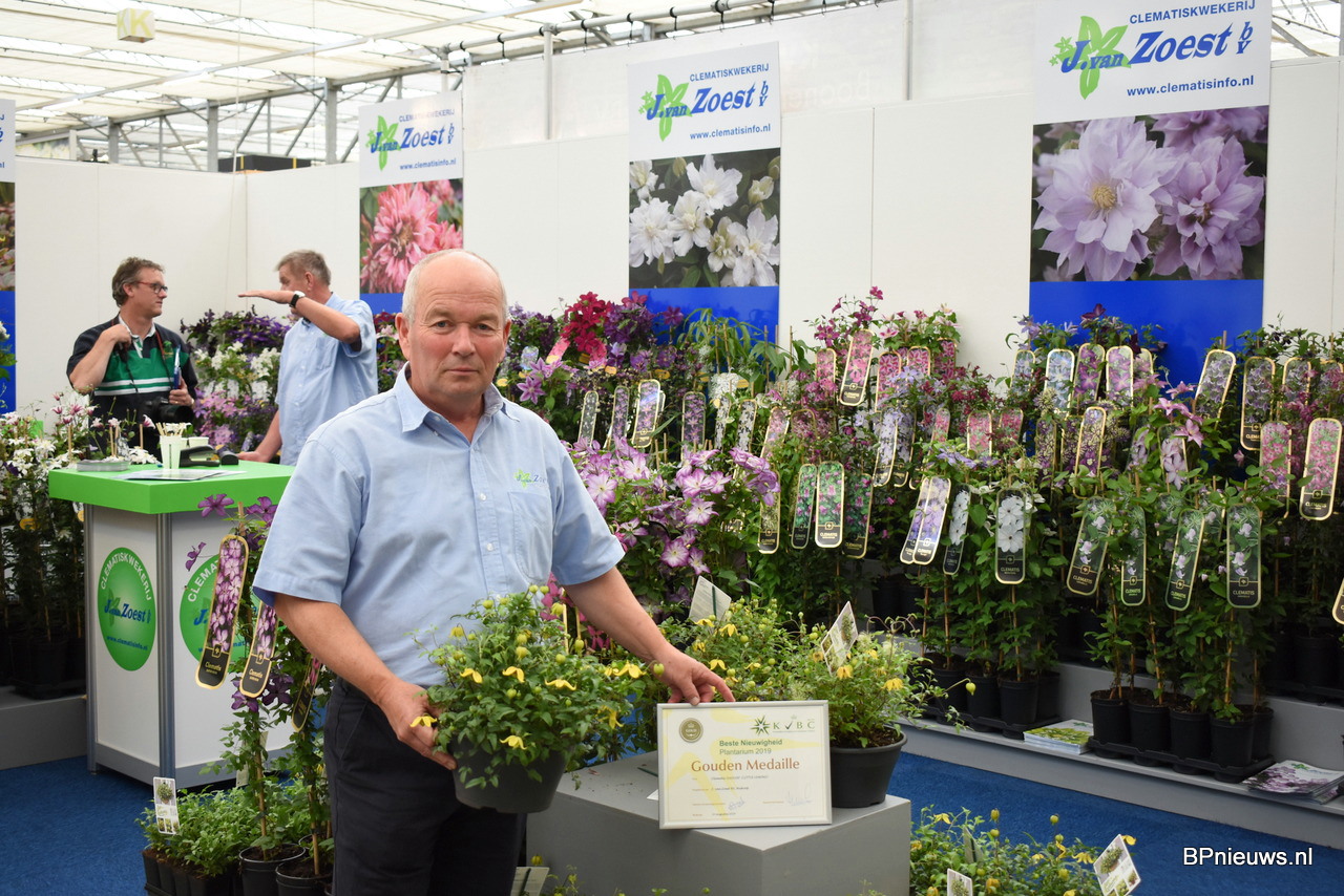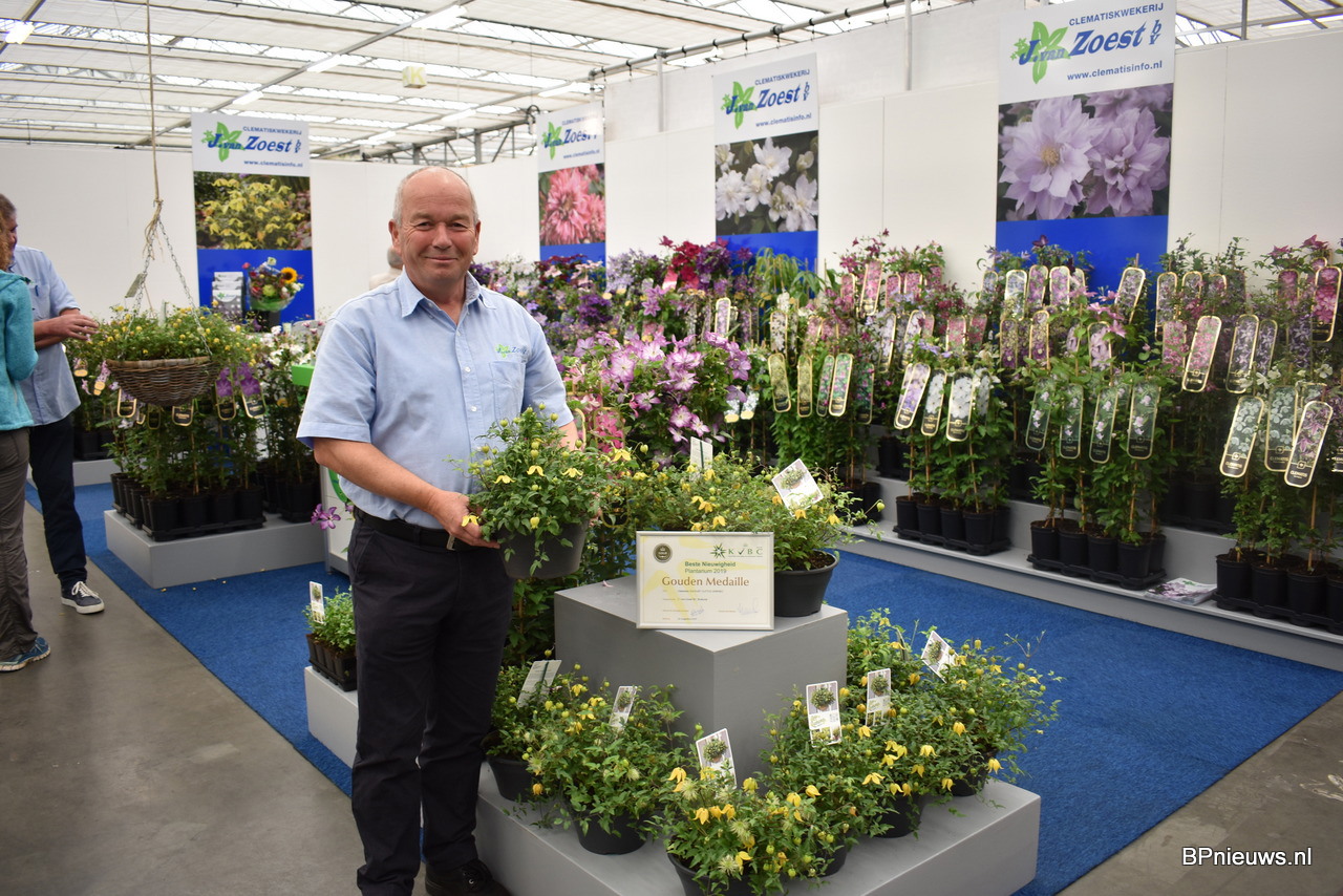 Wim Snoeijer of J. Van Zoest presenting their award winning variety Clematis ‘Zo14100’ (Little Lemons). It has been voted best Novelty of Plantarium 2019. The plant produces an extraordinary, very compact and bushy growth and is non-climbing. It is unique and innovative, according to the KVBC (Royal Boskoop Horticultural Society) jury.