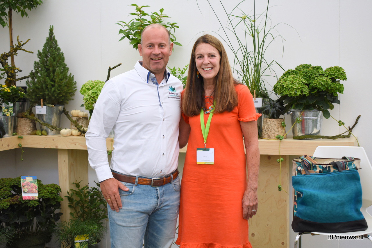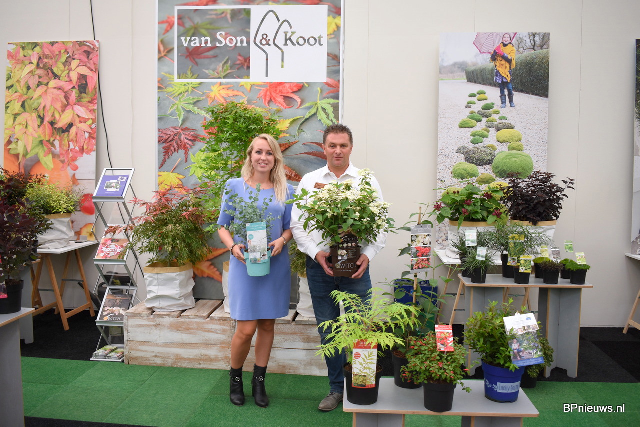 Shanice Koot together with Jeroen van Dongen of Van Son and Koot. Shanice presented the Eucalyptus and Jeroen is holding their Hydreangea (S)Witch.