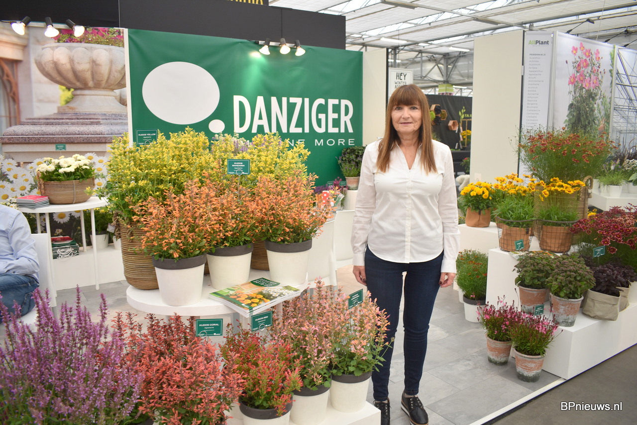 Ayala Zilberman of Danziger next to the Agastache series of Terra Nova Nurseries. Since january 2019, they supply the cuttings in Europe. The mother stock is based in Kenya and at the show, they want to show the quality of their material.