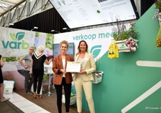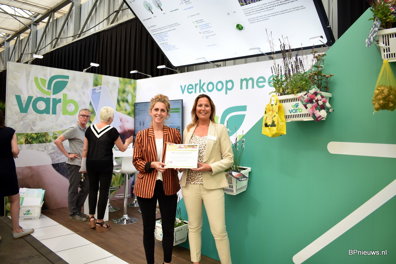 Danielle Houdijk and Linda Hoogendoor of Varb, an online platform that connects growers (sellers) and buyers (traders). They used to offer only treenursery products on their platform, but over the years, they also added bulbs and perennials. They exhibited at Plantarium for the 20th time and received an award for it.