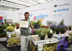 Peter Rijssen of Plantipp proudly showing the award they won for the clematis Clematis ‘Zo14100’ (Little Lemons).