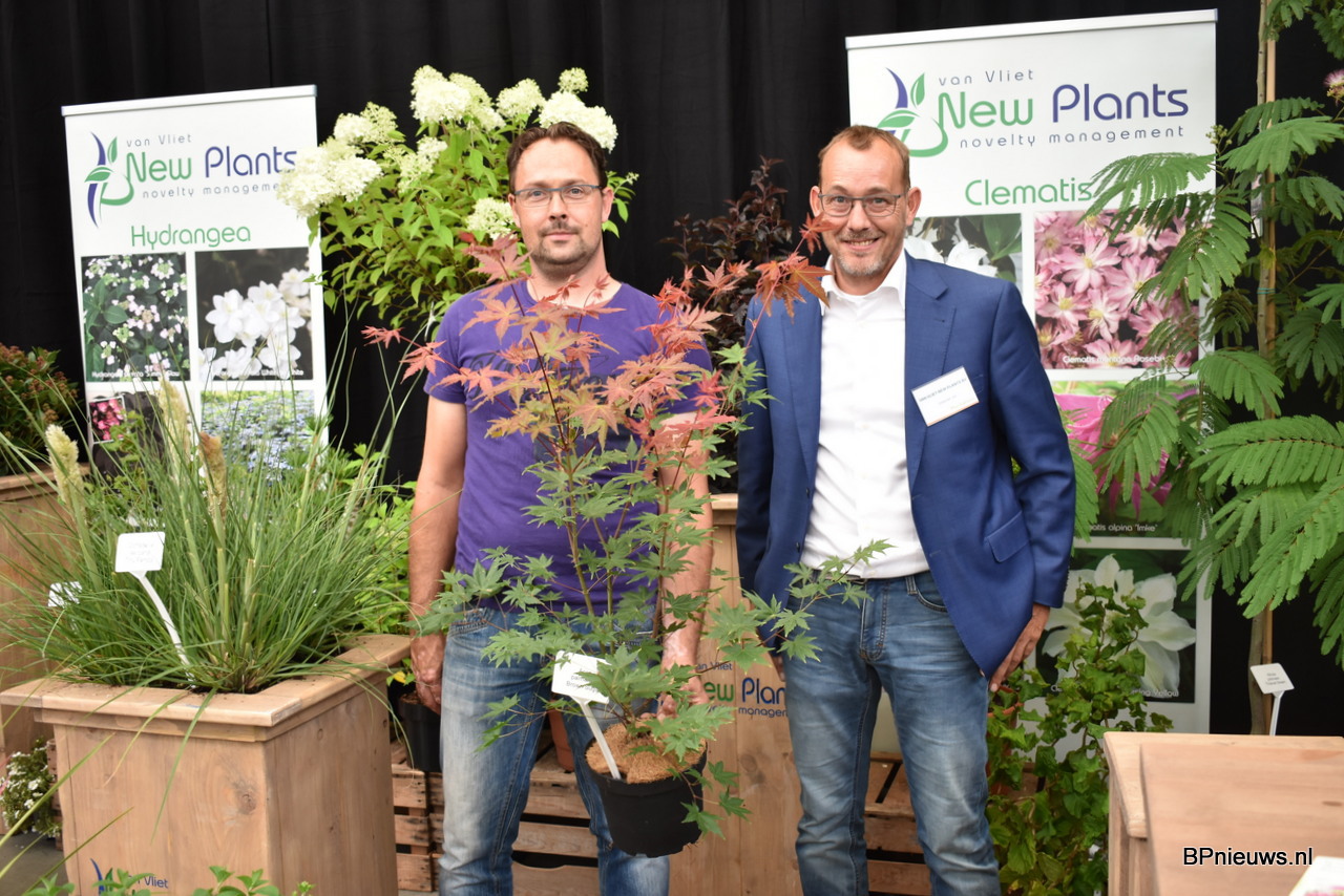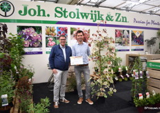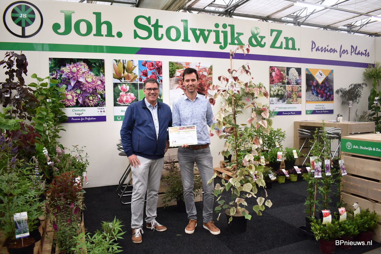 Father and son John and Johan Stolwijk of  J. Stolwijk & Zonen presenting the press award they won for Ceris Carolina Sweetheart. This wholesale-nursery supplies winter hardy perennials for the Dutch and German market. At the show, they presented several novelties.