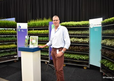 Marcen van Rooien of Codema showcases a new cultivation system particularly for cress. The lightning is supplied by Philips.