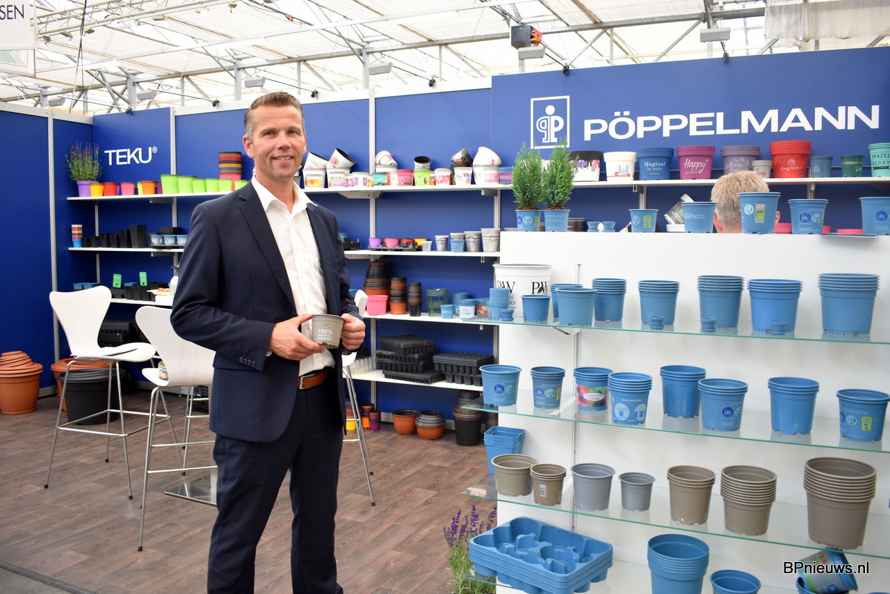 Ronald Vreugdenhil of Pöppelmann presenting the Pöppelman blue concept, which is now also available in the color Taupe.