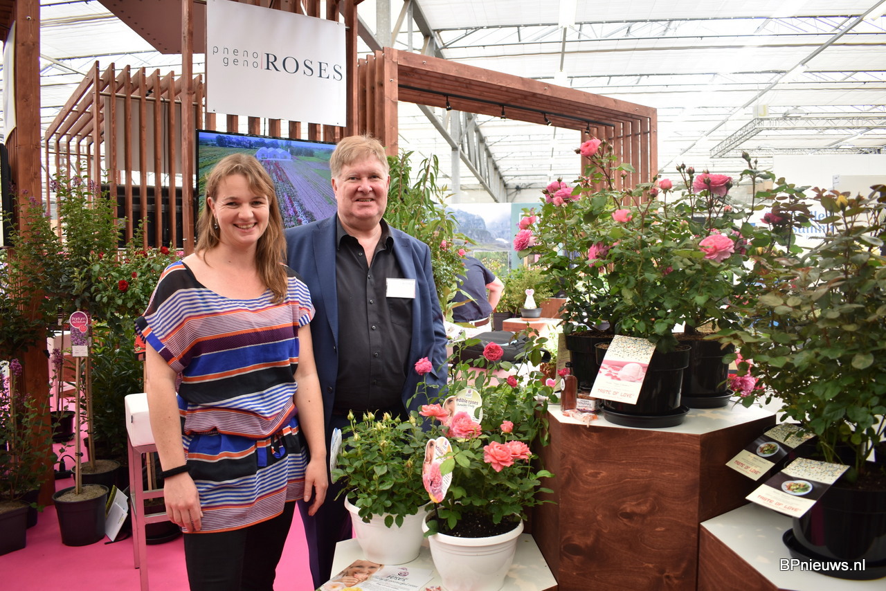 Willianne Sluiter of Incredible Roses nad Peter Cox of Pheno Geno Roses presenting their edible roses ‘Taste of Love’.