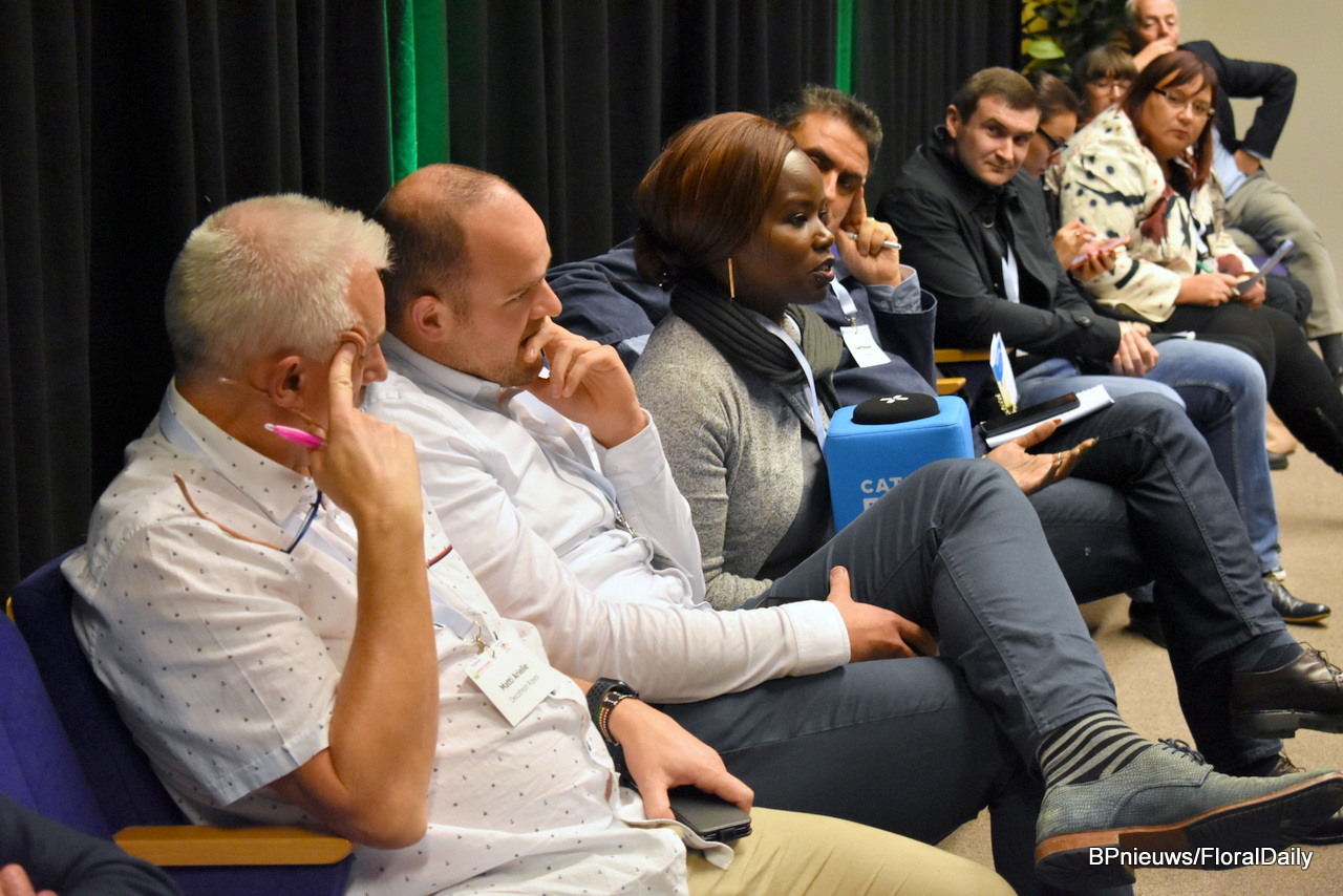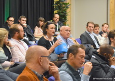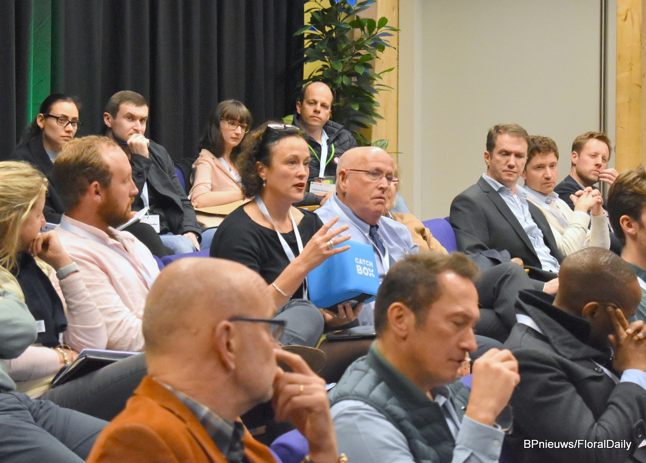 Plenty of questions and comments from the audience. Speaking here is Emma Beardshaw of Dümmen Orange.