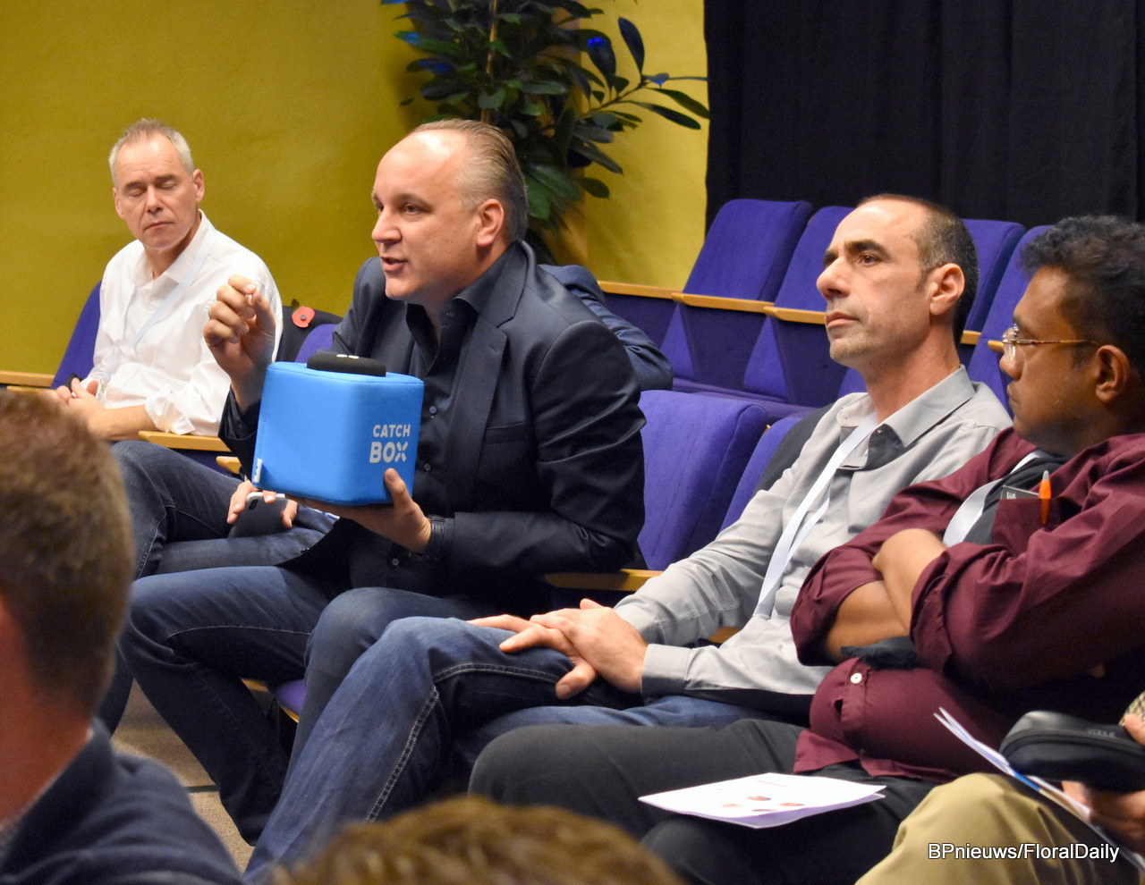 Moderator Simone van Trier was ready to throw the blue microphone to anyone willing to contribute to the discussion.