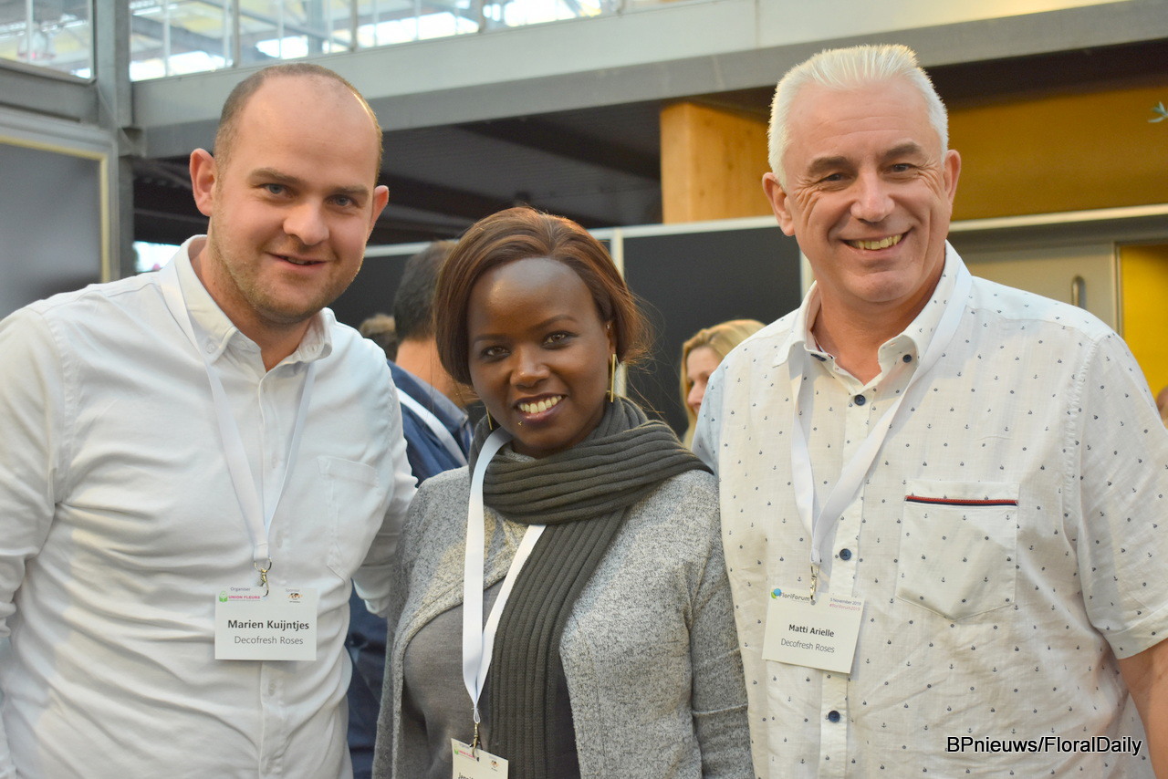 Marien Kuijntjes, Jennifer Gertue and Matti Arielle represent Kenyan rose nursery Decofresh Roses.