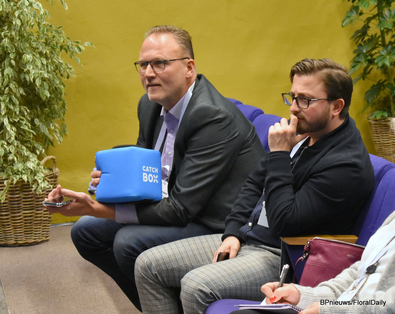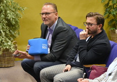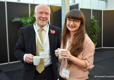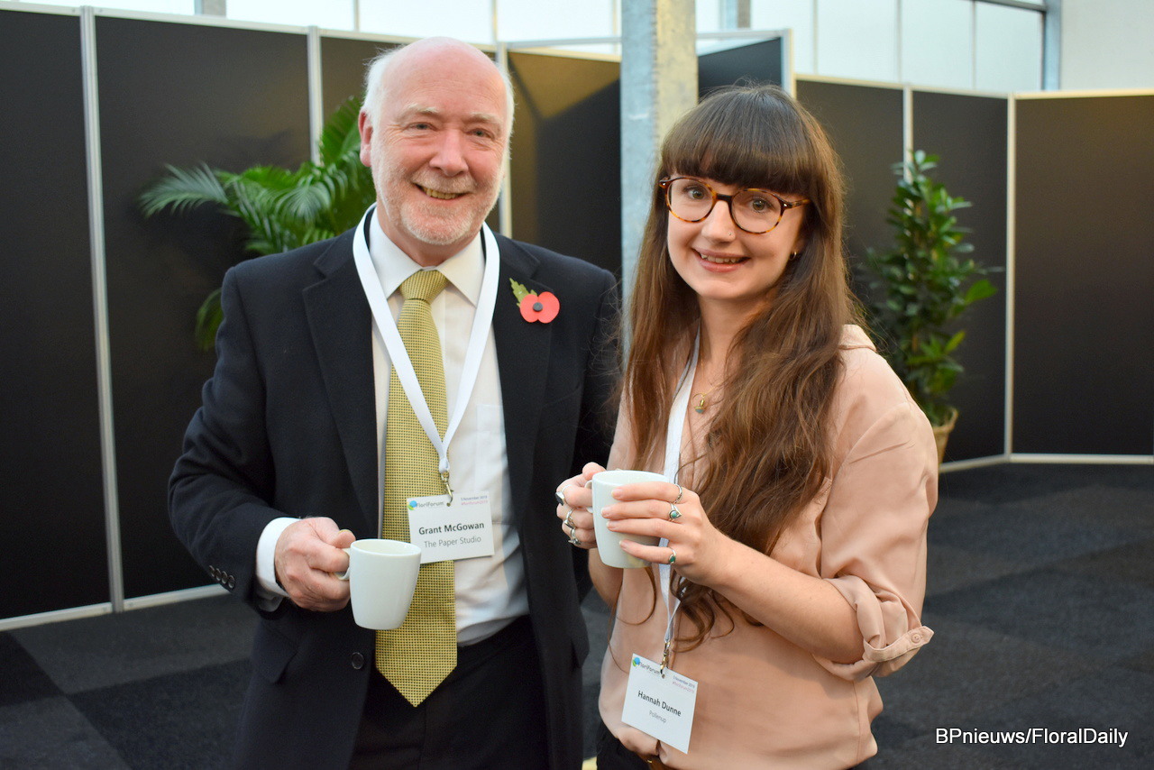 Paul Burton of Flower Hub and Dennis van der Lubbe of the Flower Council of Holland enjoying a cup of coffee before the panel