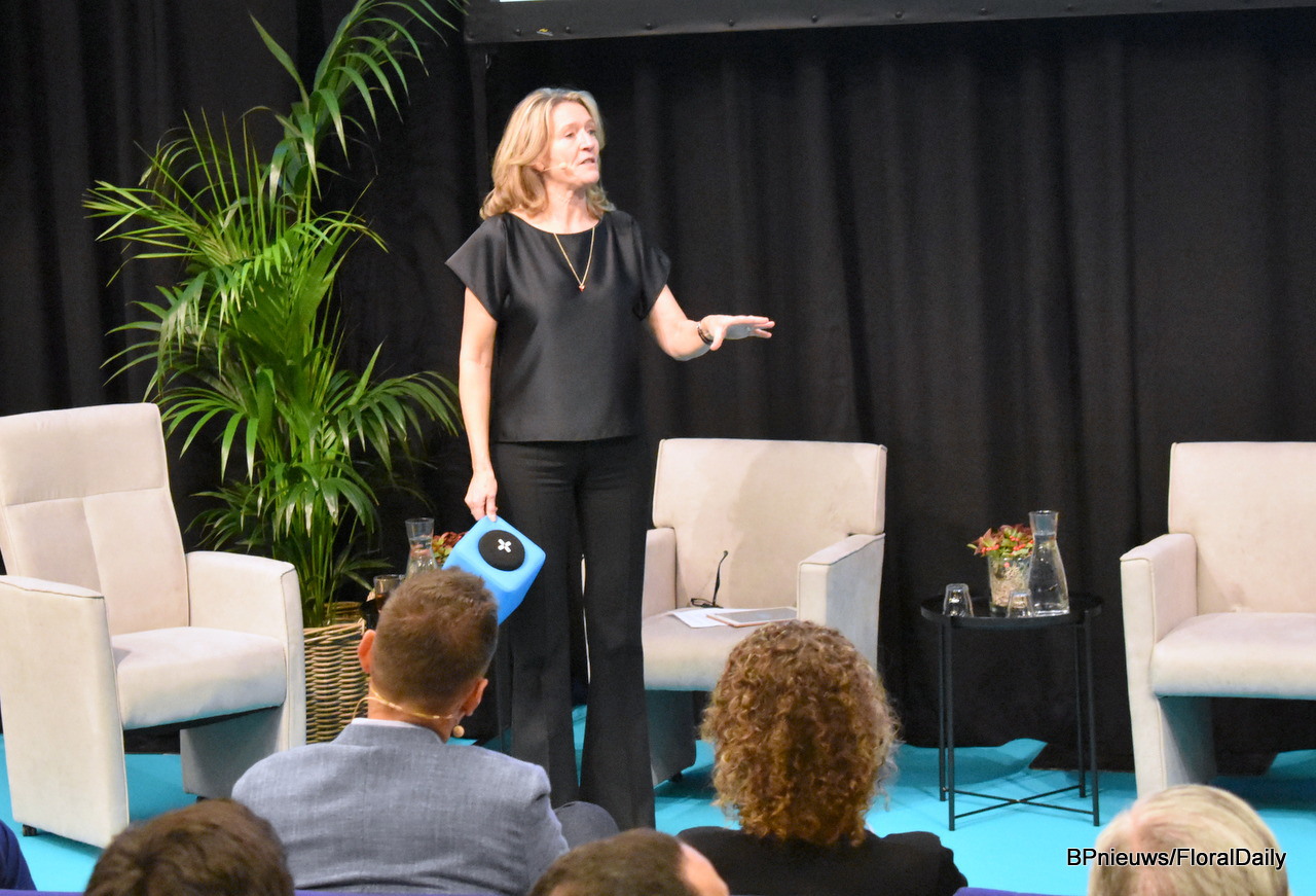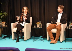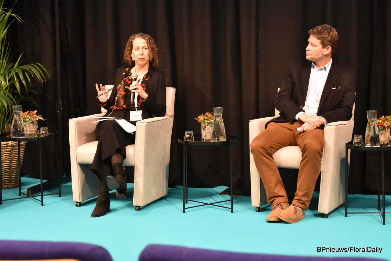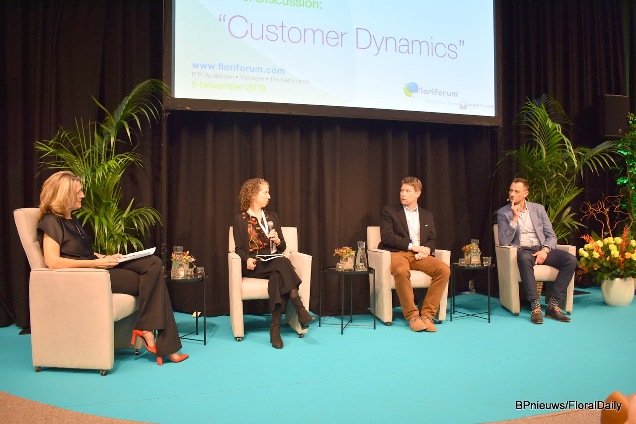 The panel, with from left to right moderator Simone van Trier, Kate Penn of SAF, Paul Burton of Flower Hub and Dennis van der Lubben of the Flower Council of Holland