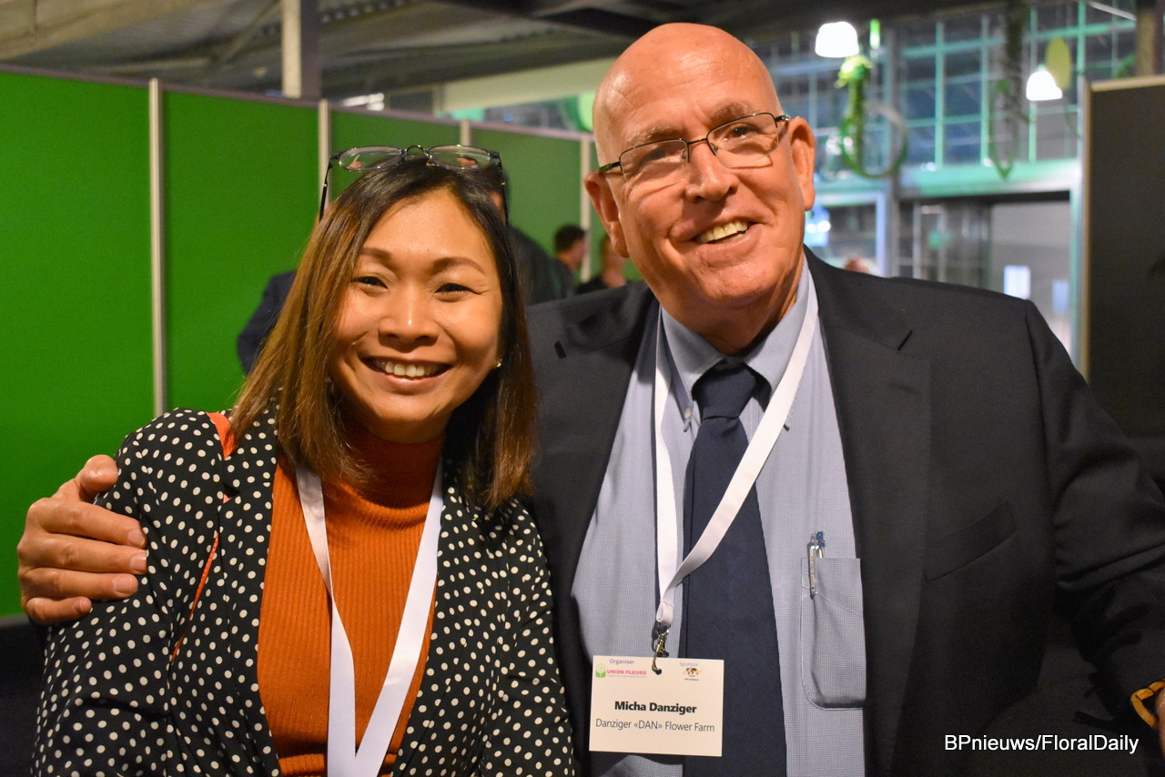 Mya Thway, who works with the flower industry in Myanmar, with breeder Micha Danziger