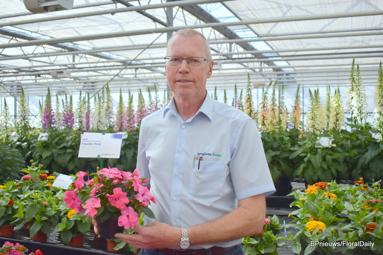 Gerard Werink from Syngenta with the Impatiens Hawkeri Florific Pink from seed.