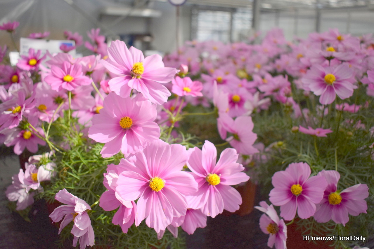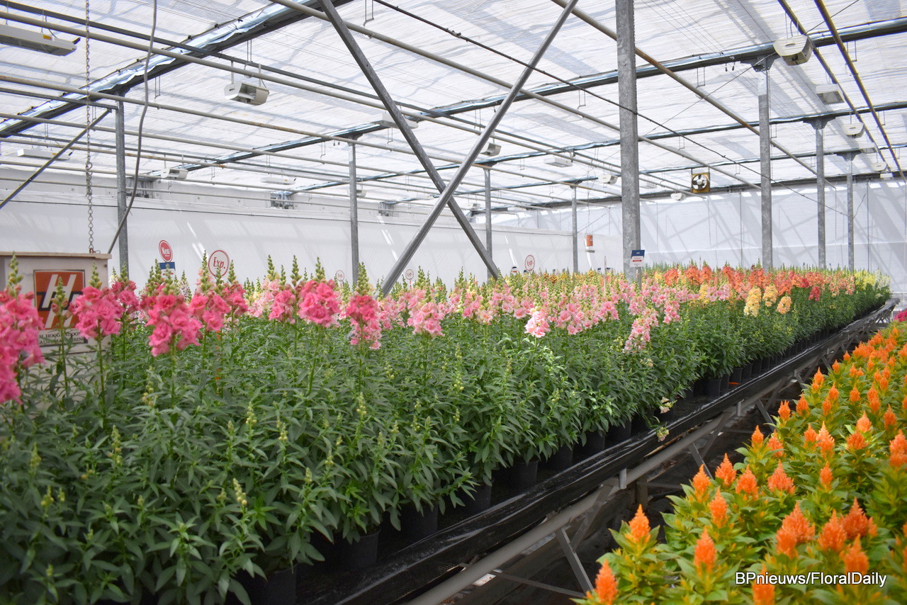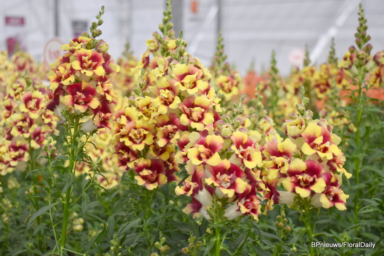 On the left in the photo, many tables with Double Shot can be seen. A new series of double-flowered Snapdragon. The series has heavy branches, performs well in the garden but can also be cultivated to be used as cut flowers for a short bouquet. The stems reach about 60 centimeters, which is slightly shorter than the original cut snapdragons. But for many bouquets, that is not a problem.