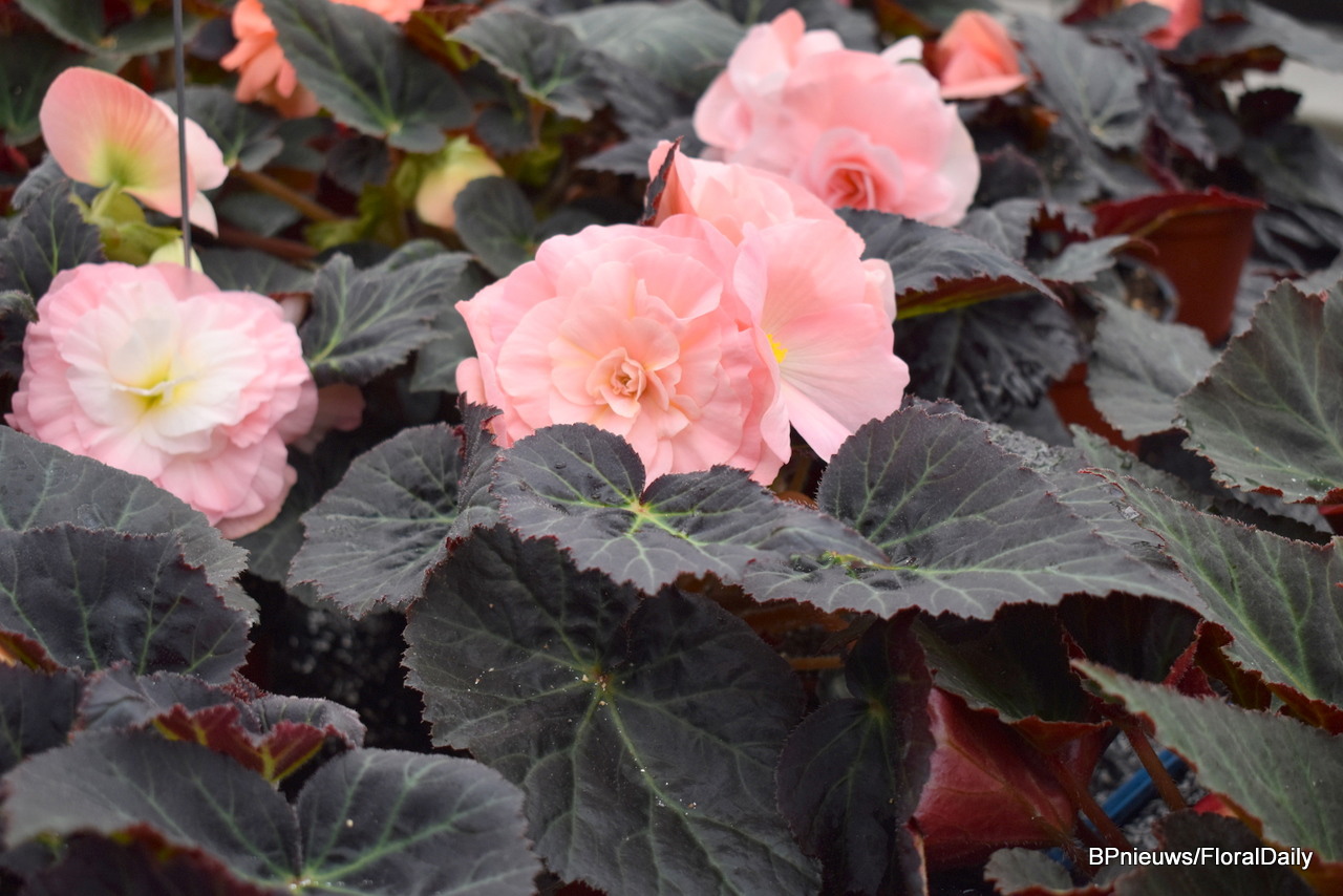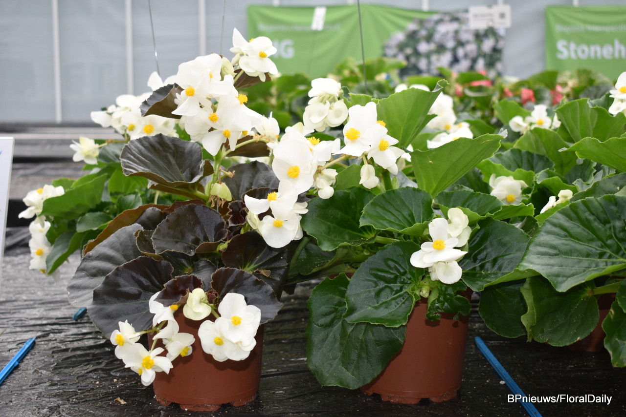 The new interspecific Begonias from Benary. The white variety with green leaf is an improved variety. In addition, there is also a new white with dark leaf. The new varieties are named Big White Green Leaf and Big White Bronze Leaf.