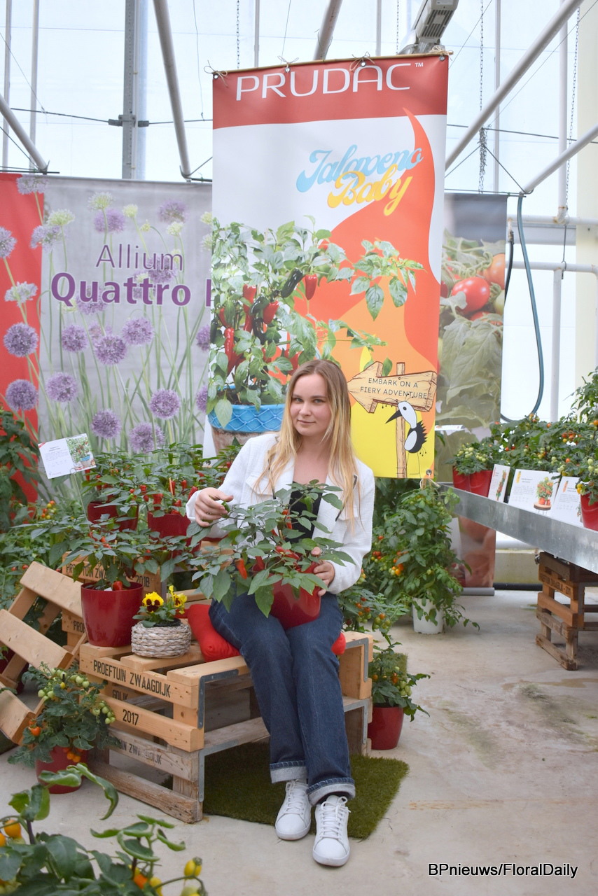 Viktoriia Taranenko, responsible for sales and marketing, at Prudac. With their Jalapeno Baby. A tasty Jalapeno that you can keep fresh in the kitchen.
