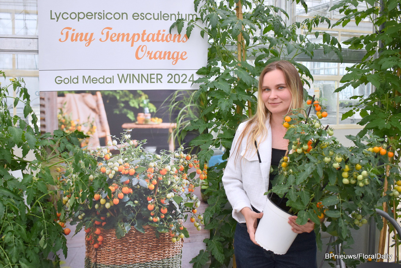 Viktoriia Taranenko met the Gold Medal winner of Prudac, the Tiny Temptations Orange. A flavorful tomato plant for the kitchen, which produces many fruits.