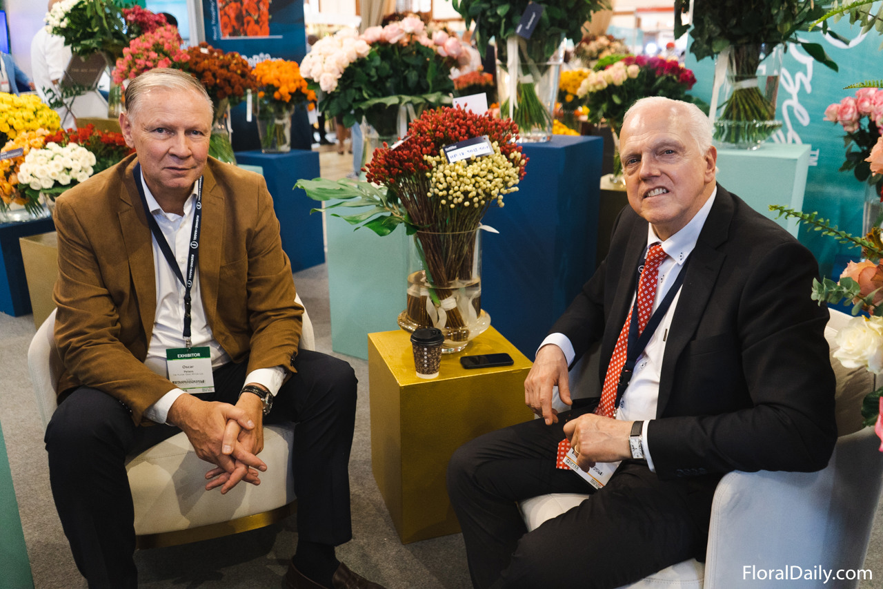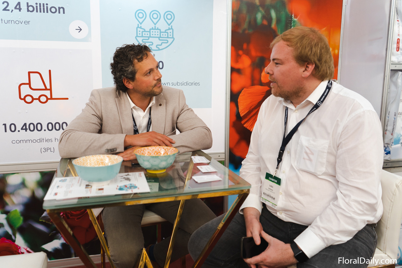 First time Iftex for Roelof Stijnman and Gerard Haazebroek of E.Z flower, next to some of their flower explosions.