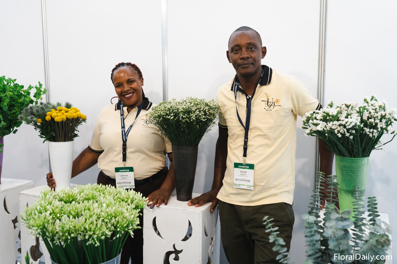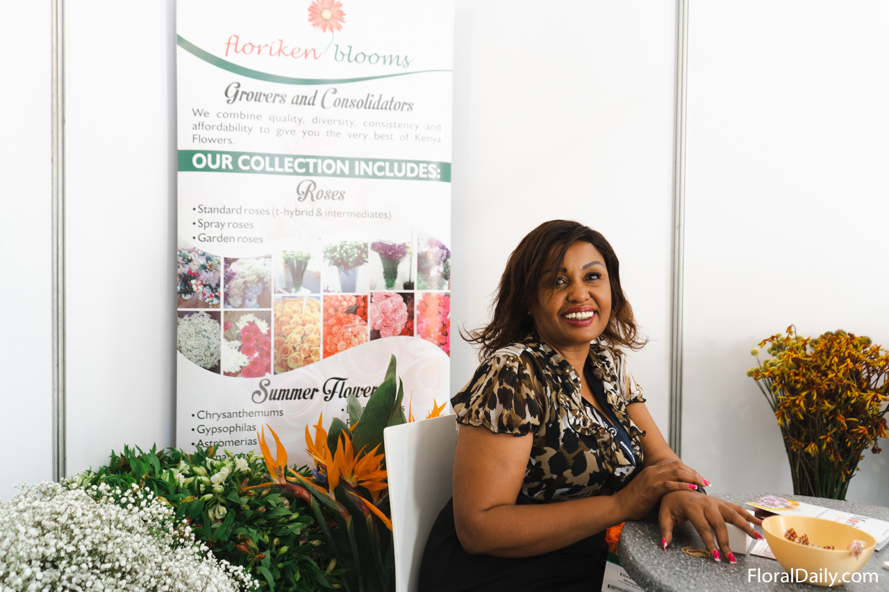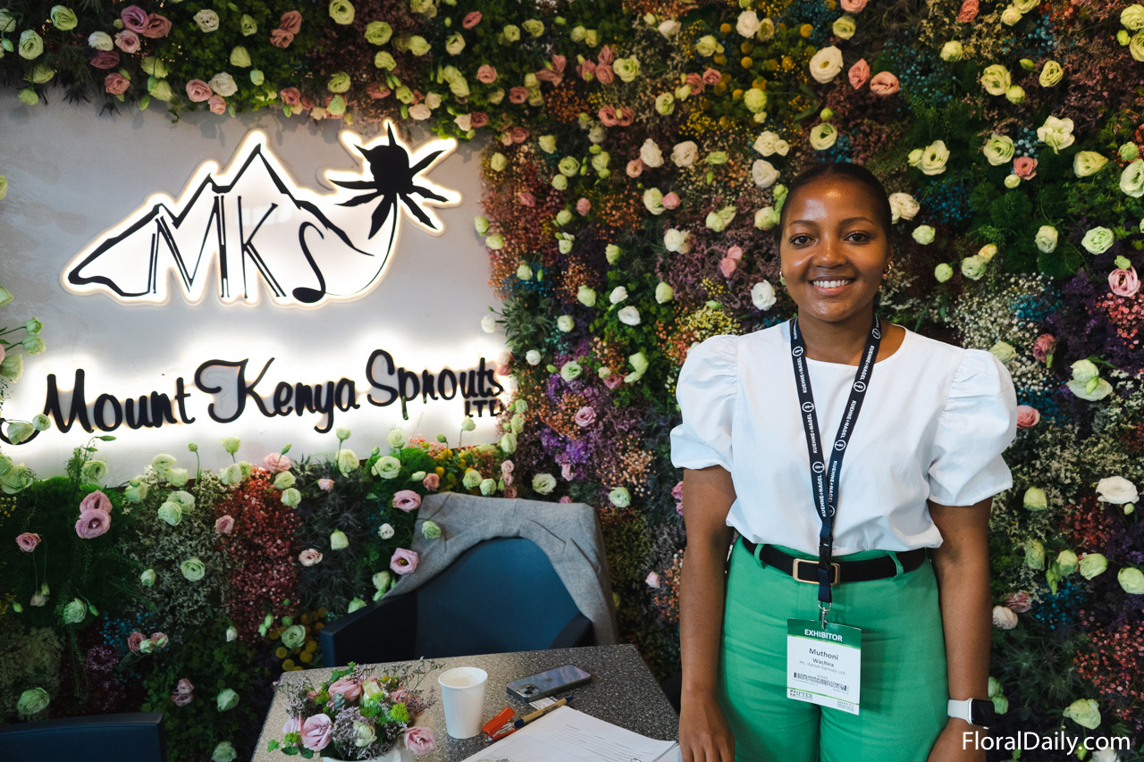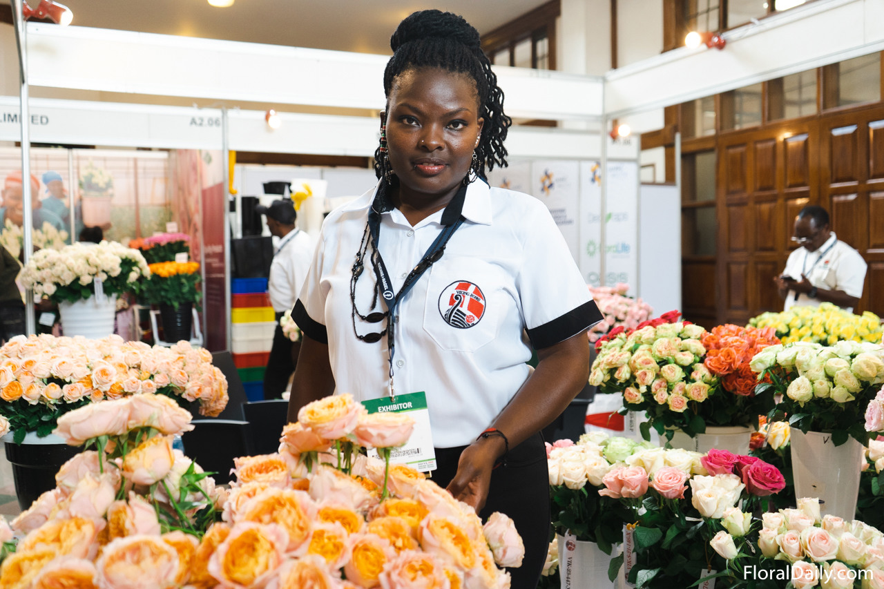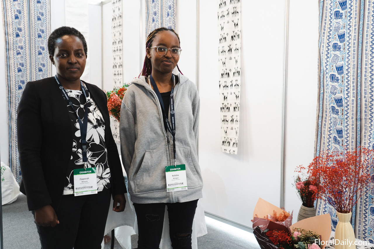 Visitors at the booth of the Flower Hub & Lauren International were welcomed by Miriam Mbugua