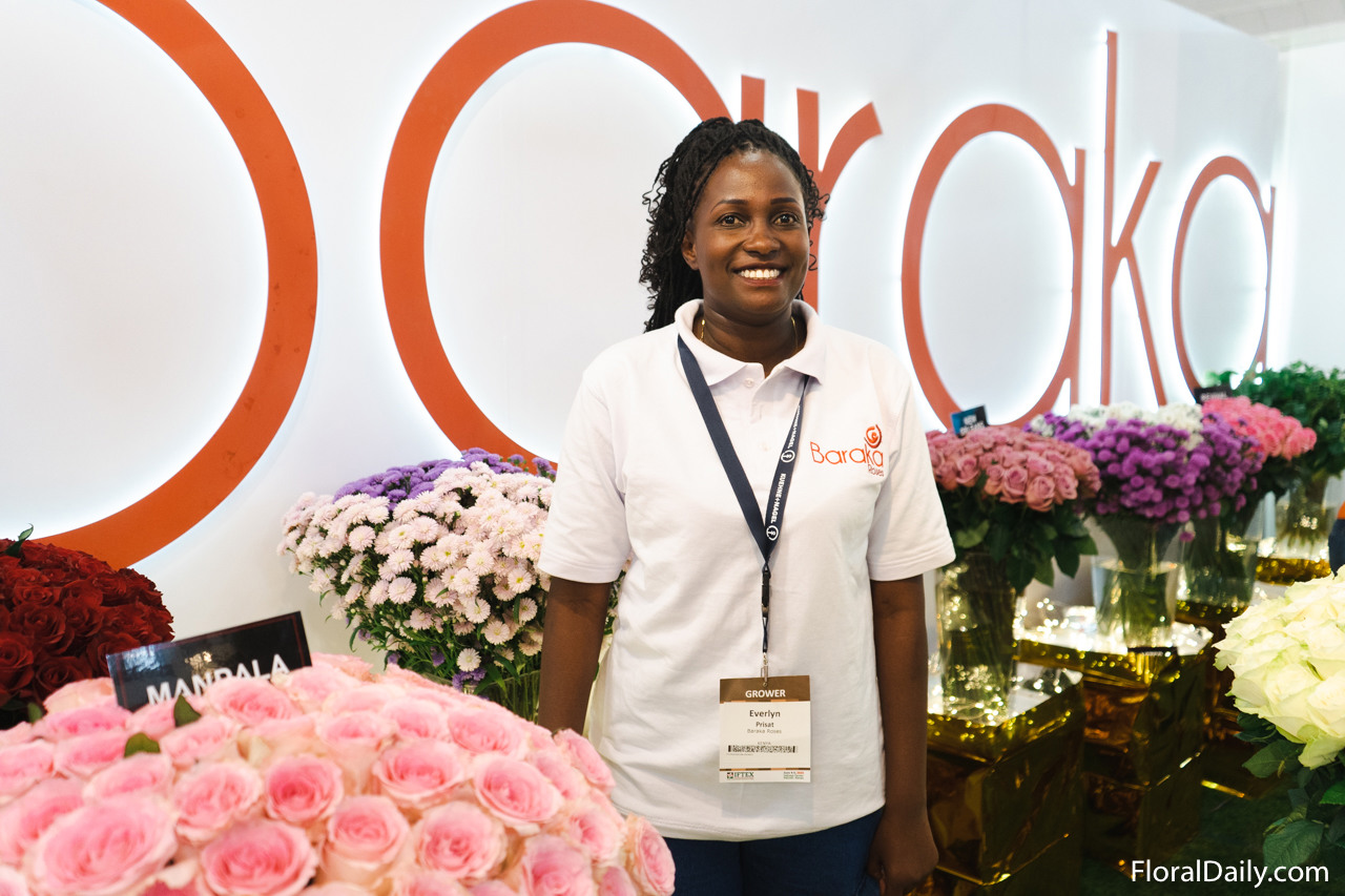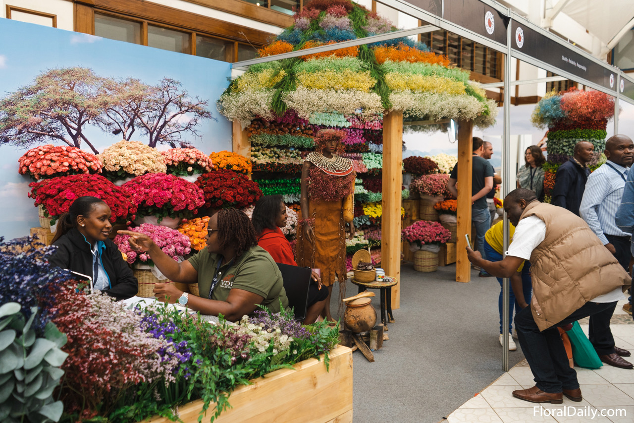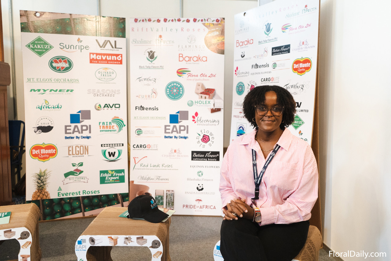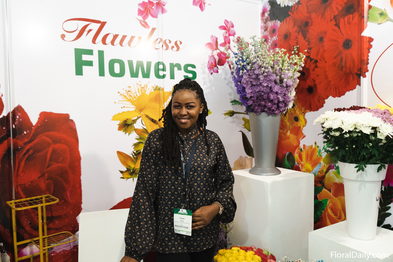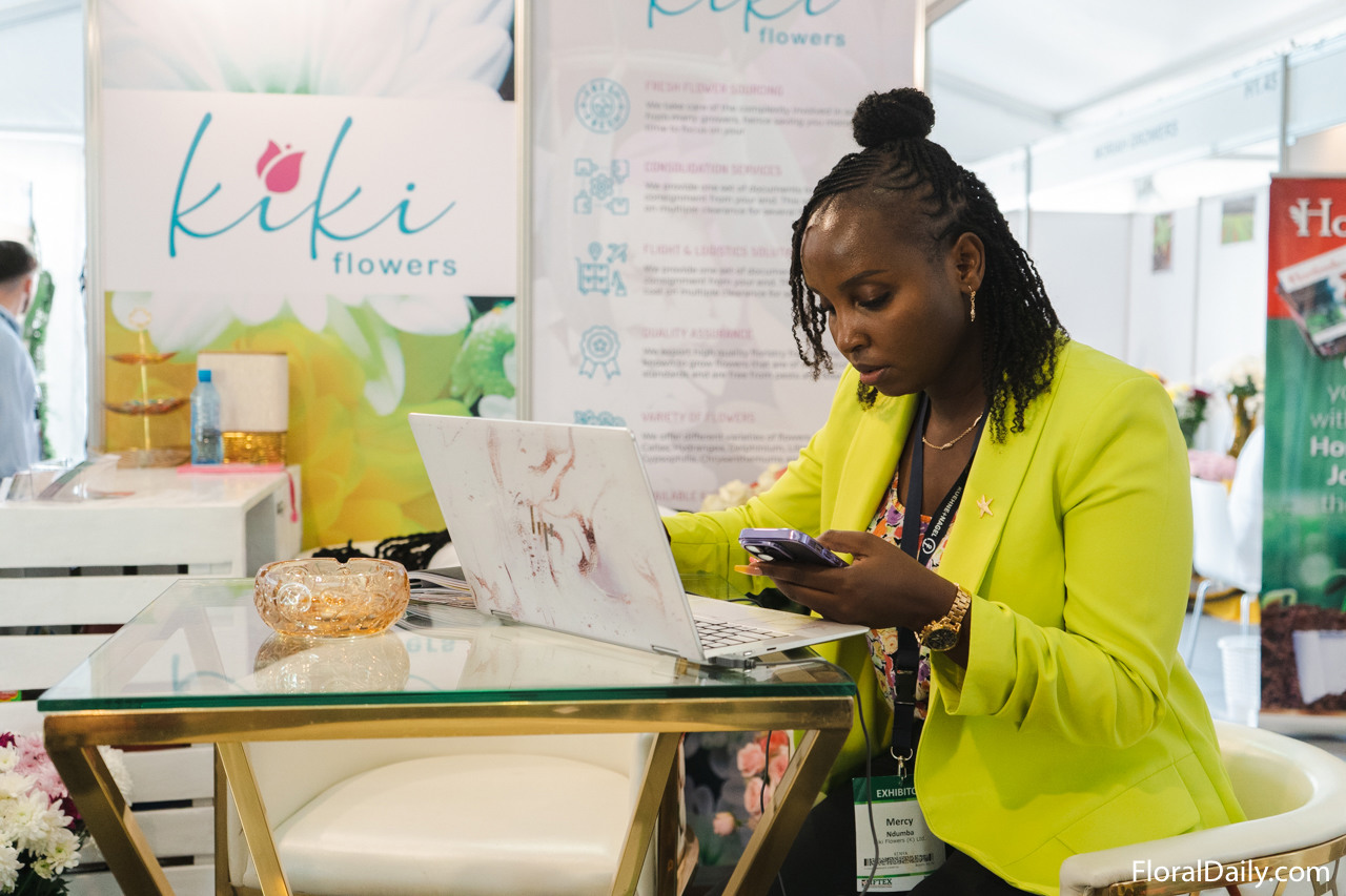 Visitors at the booth of the Flower Hub & Lauren International were welcomed by Miriam Mbugua