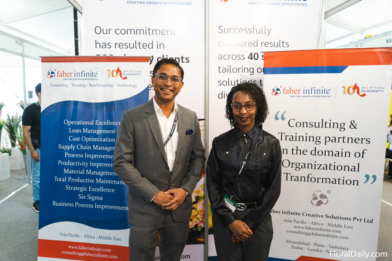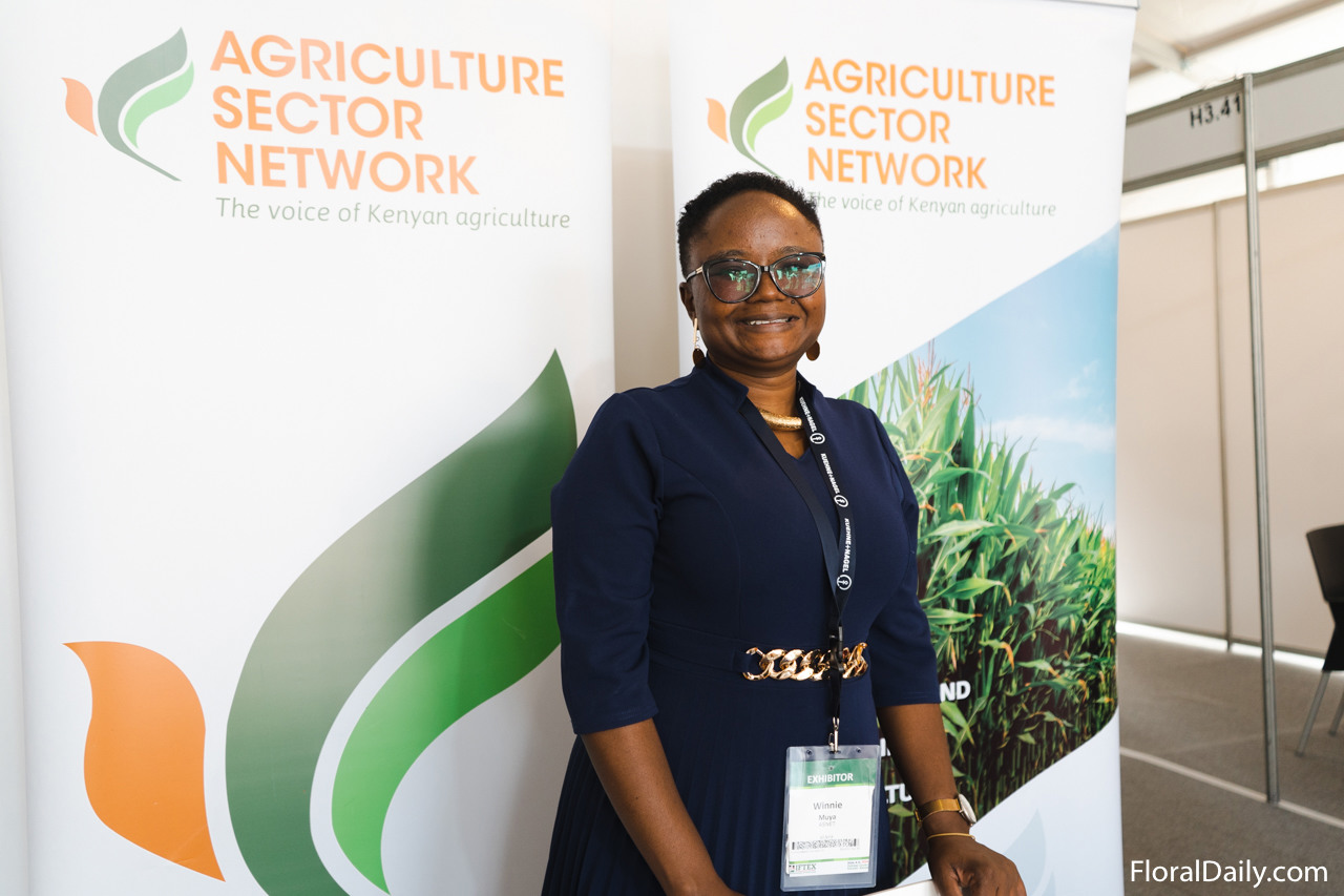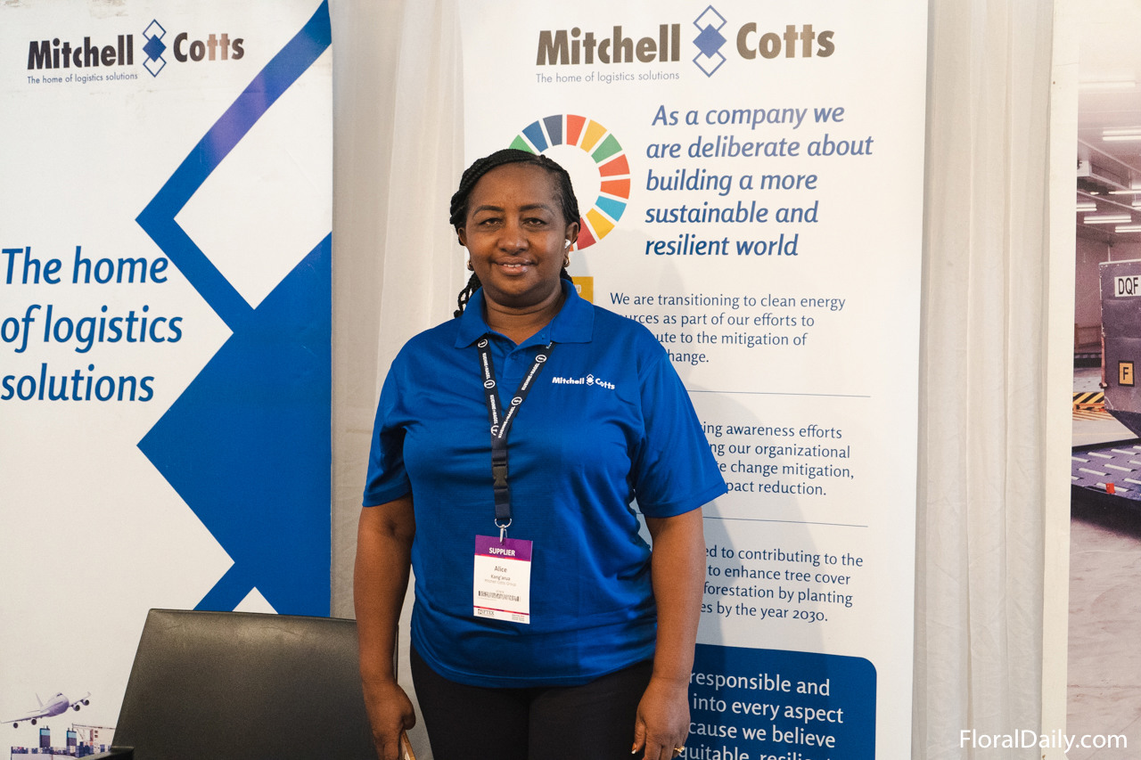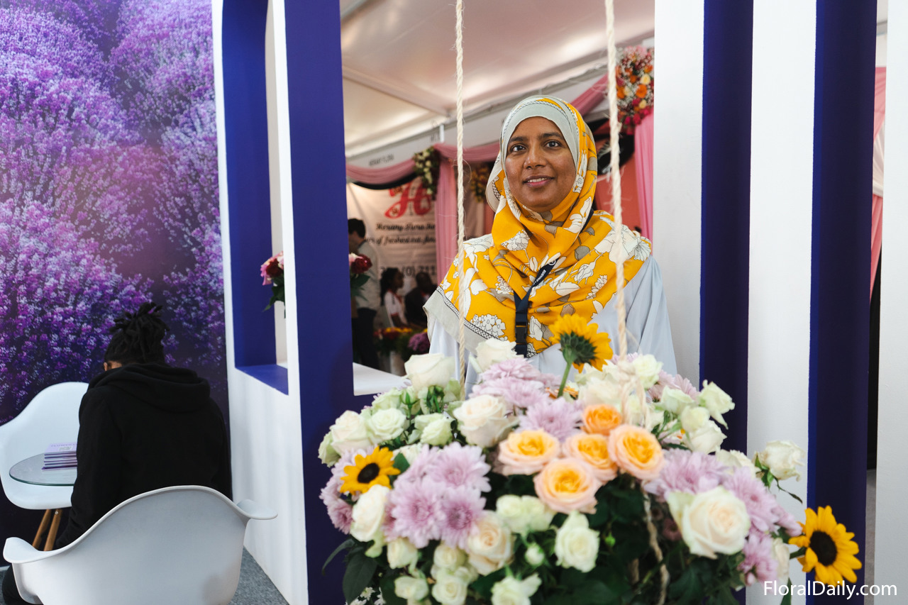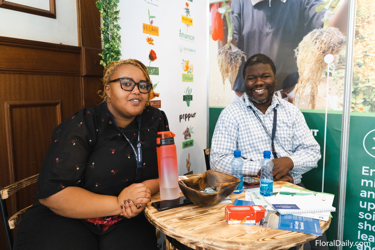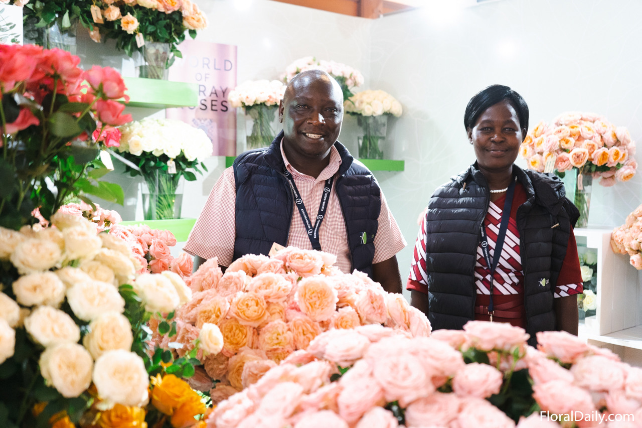 Visitors at the booth of the Flower Hub & Lauren International were welcomed by Miriam Mbugua