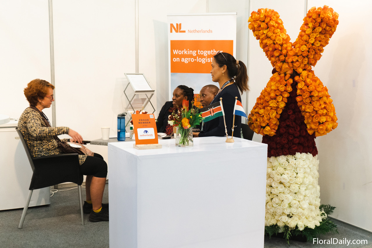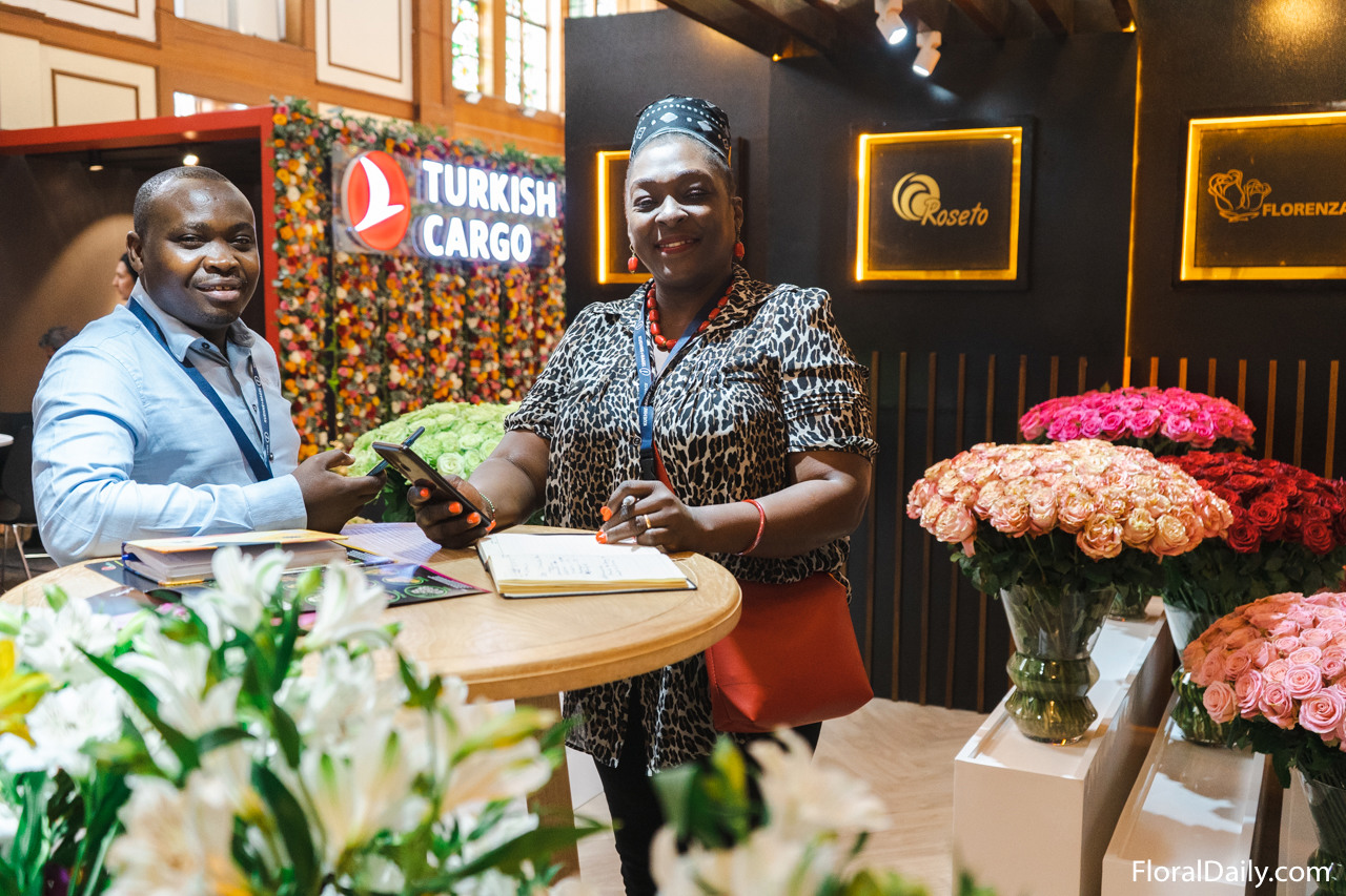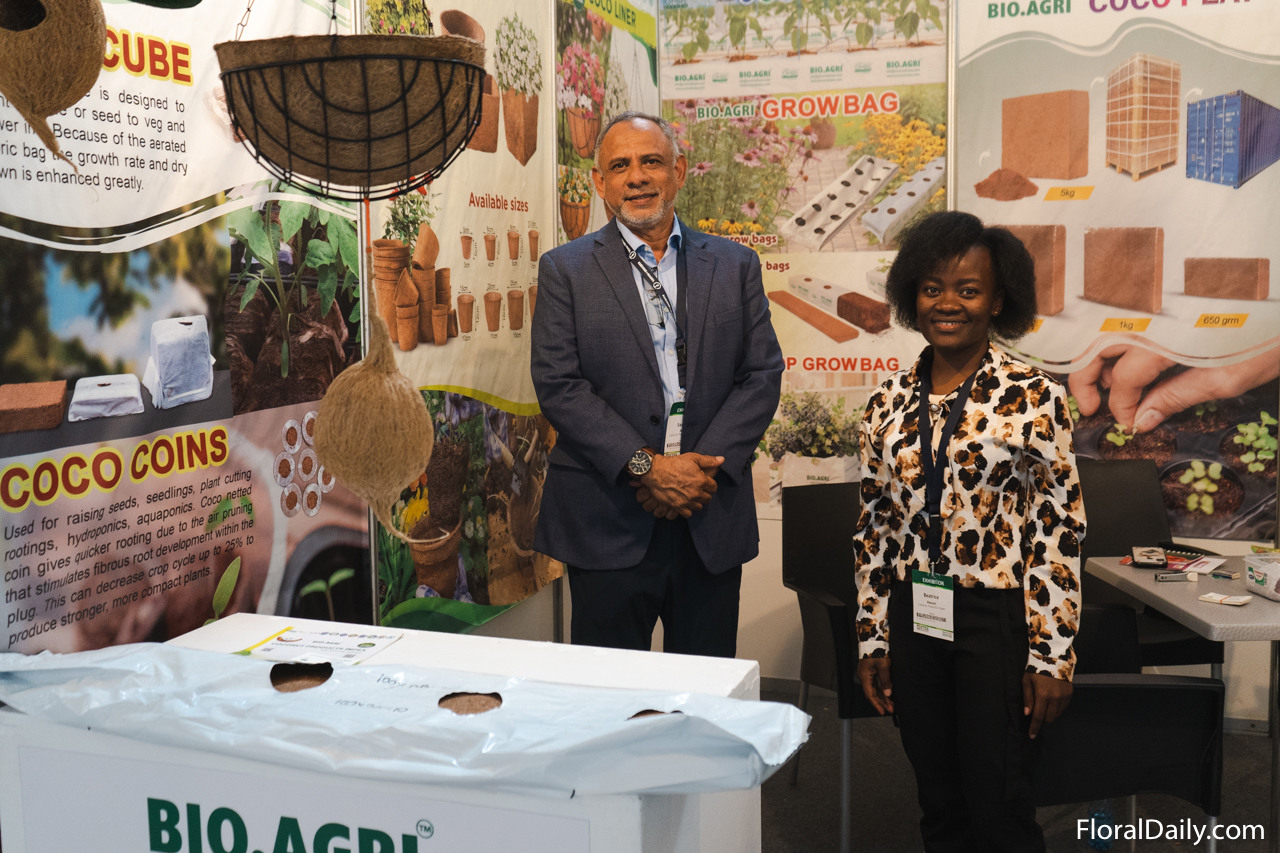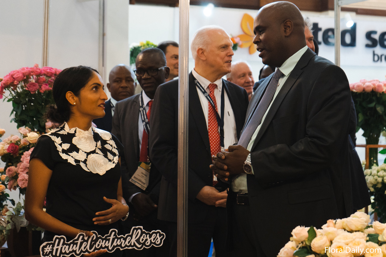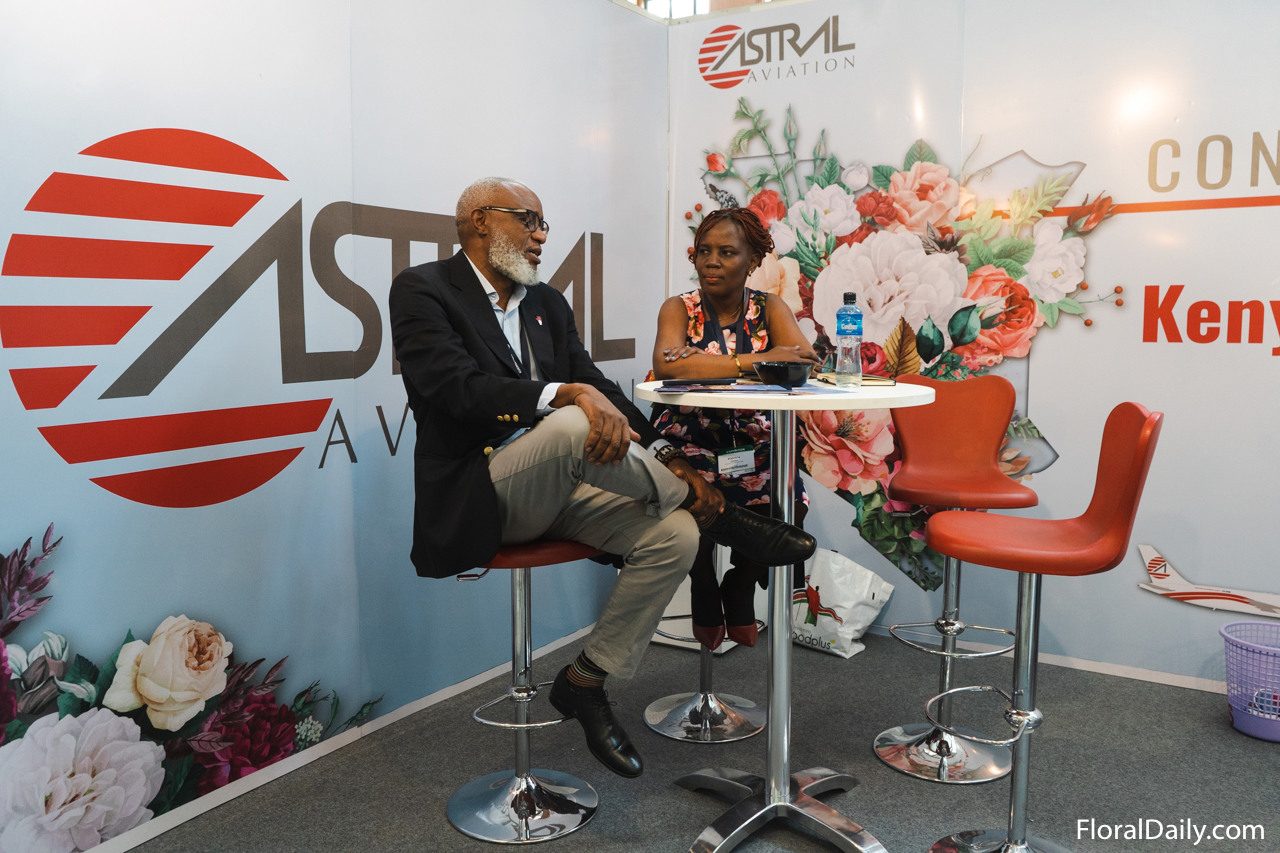 Visitors at the booth of the Flower Hub & Lauren International were welcomed by Miriam Mbugua