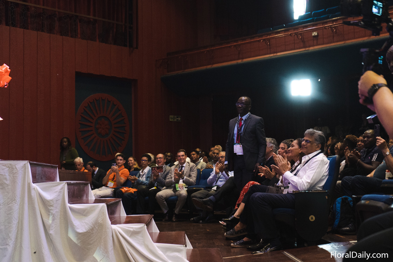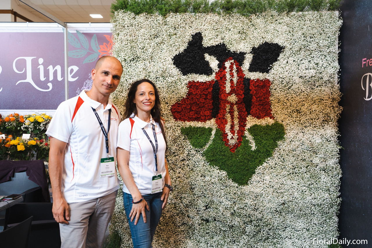 Raz Shalom and Ginna Ramos of Beauty Line with the Kenyan flag made out of flowers.
