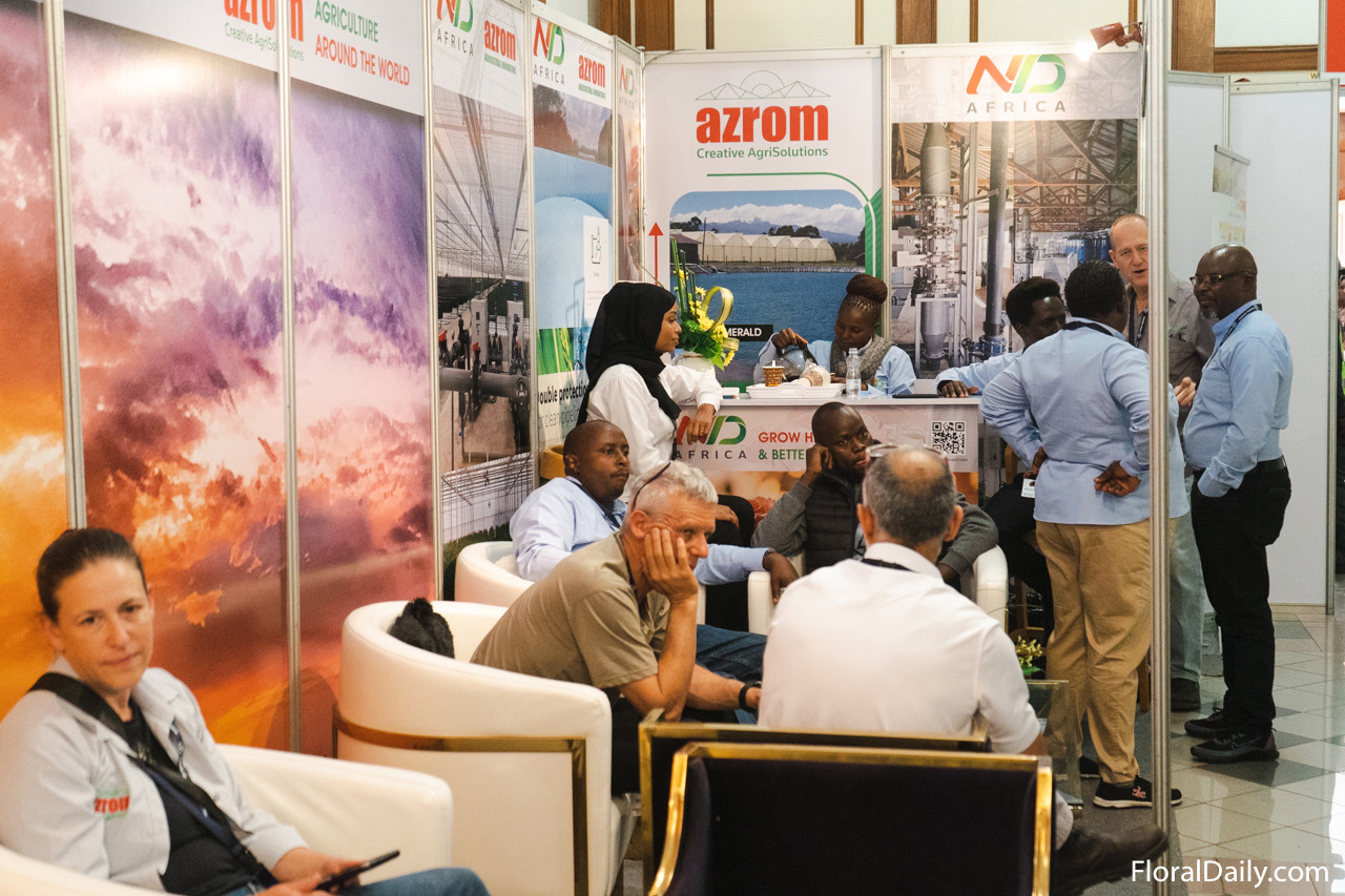 Busy booth at Azrom, supplier of greenhouses, irrigation and installation.
