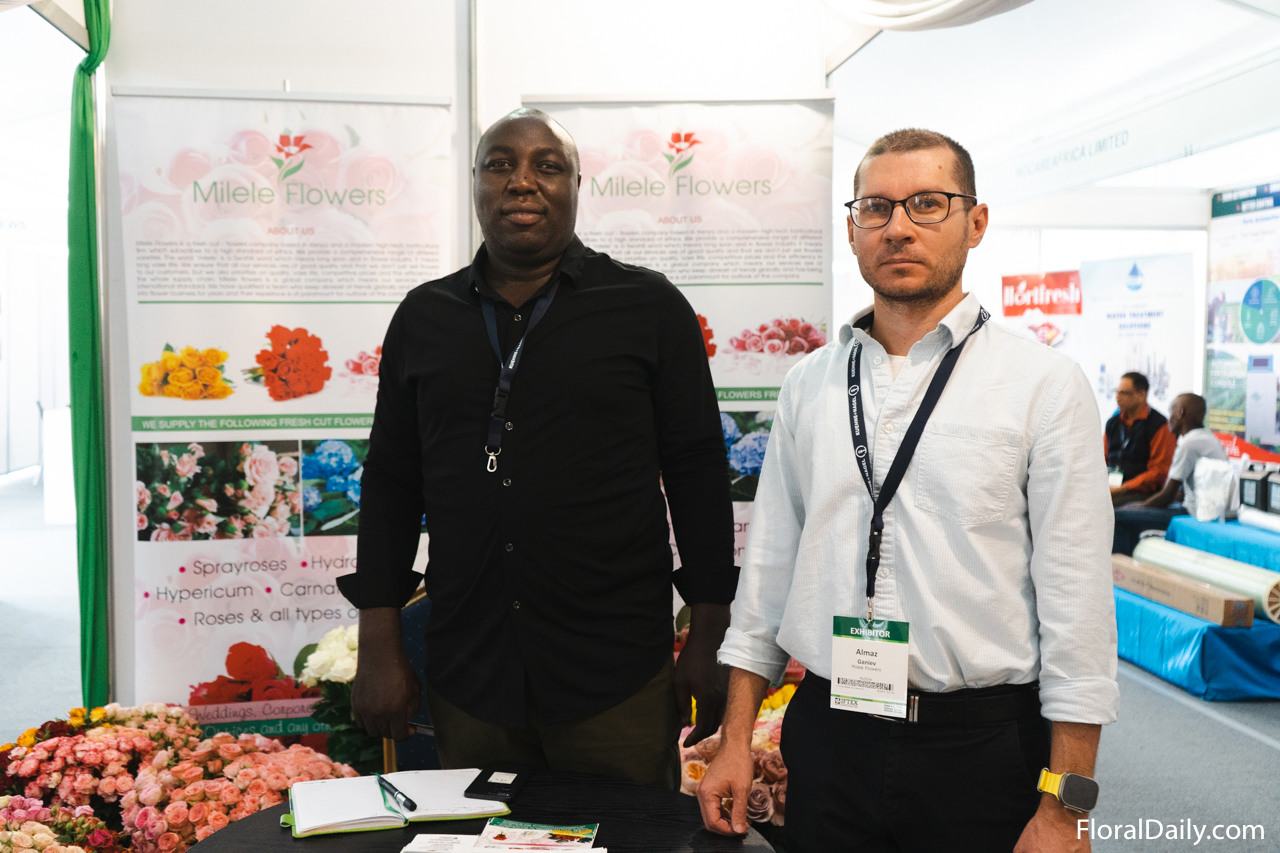Almaz Ganiev and John Macharia with Milele Flowers. They consolidate Kenyan flowers and ship them worldwide.