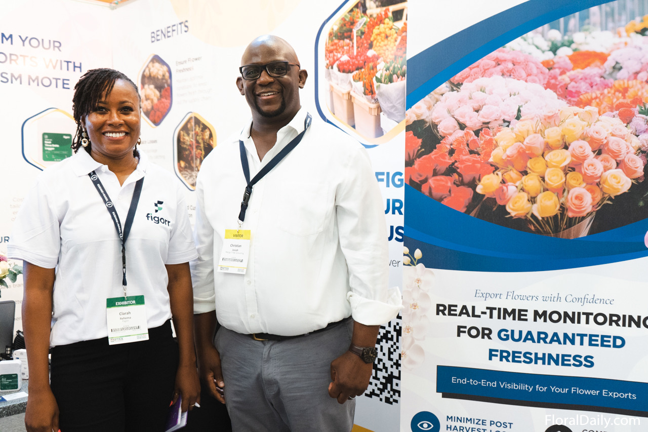 Jan Willem scheeve and Lejla Begovic with Deliflor.  They have a lot of pink and purple flowers in their booth as those are popular colours in Kenya.