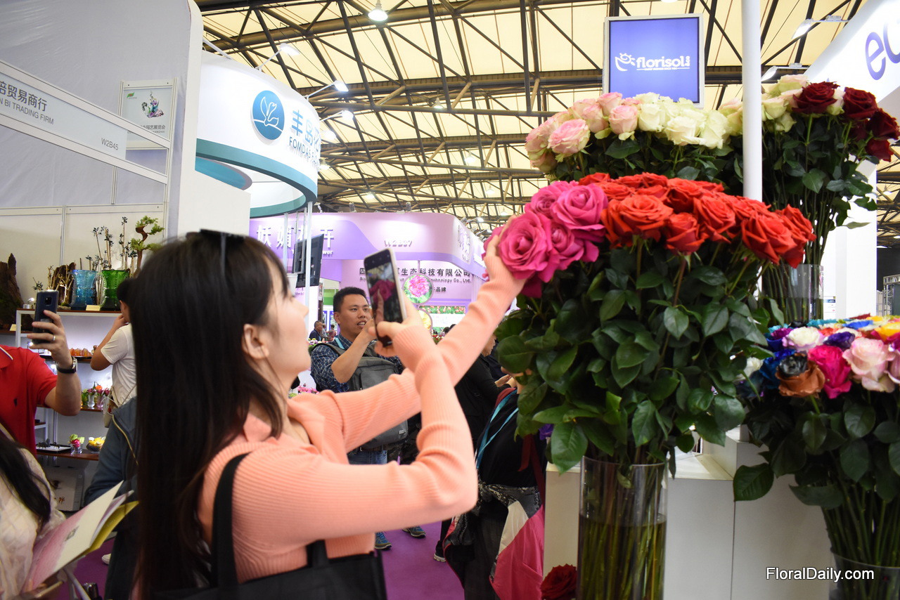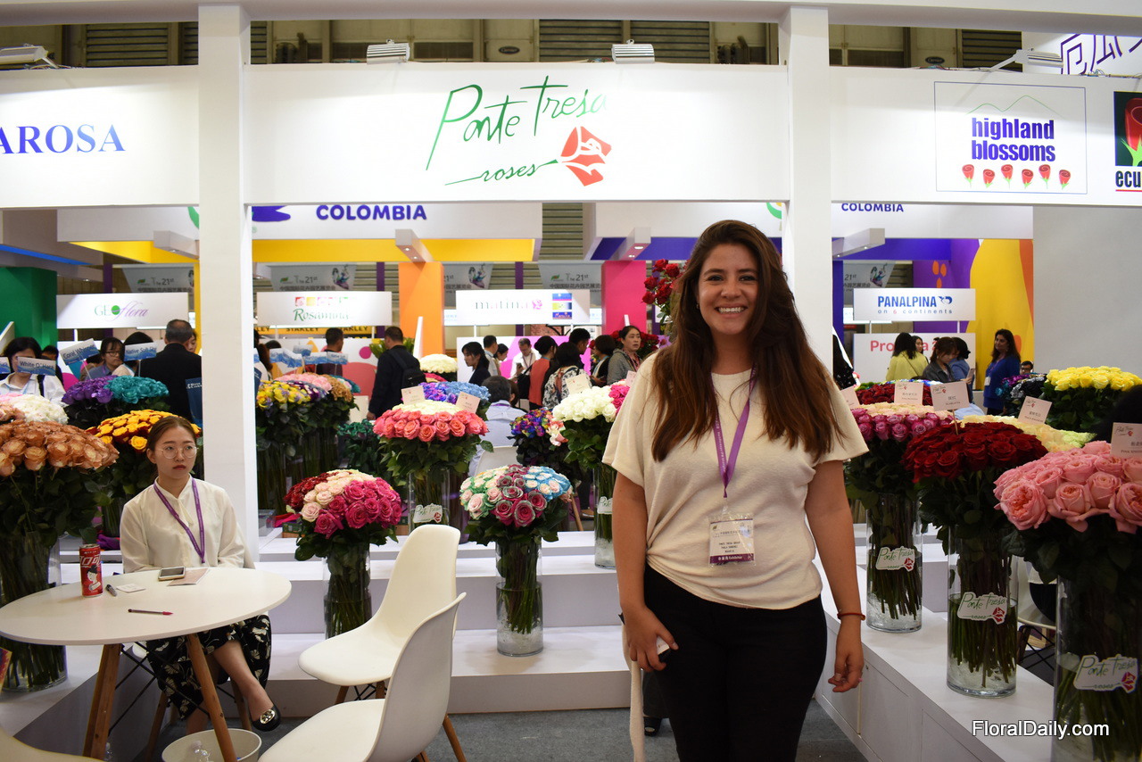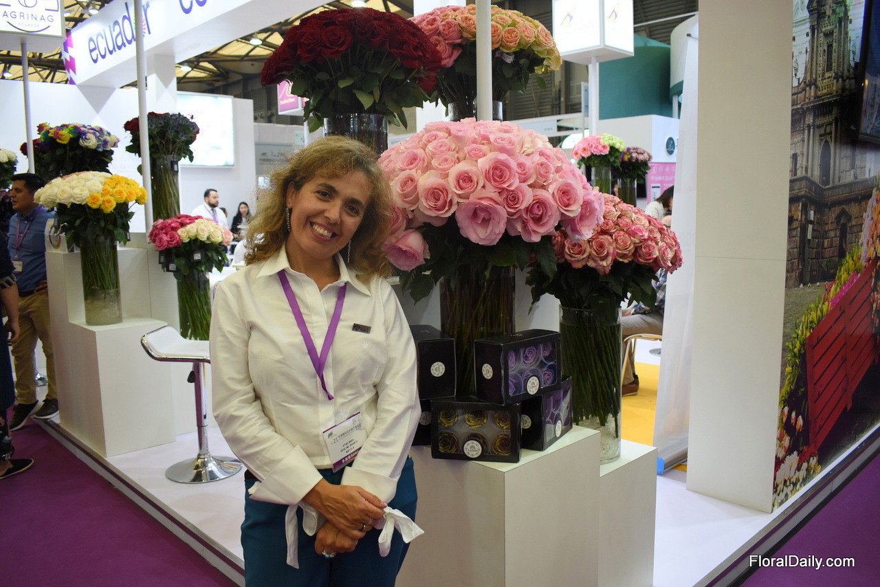 Paula Sanchez of Ponte Tresa. They are exhibiting in China for the first time. The grow roses in 3 farms in Ecuador and they are at the show to look for opportunities to export them to China. Currently, their main markets are the US and Switzerland.