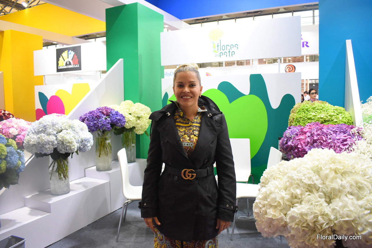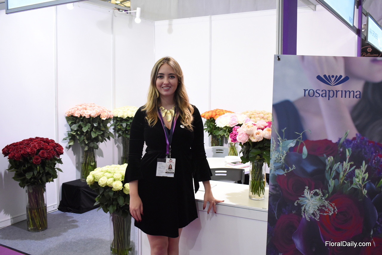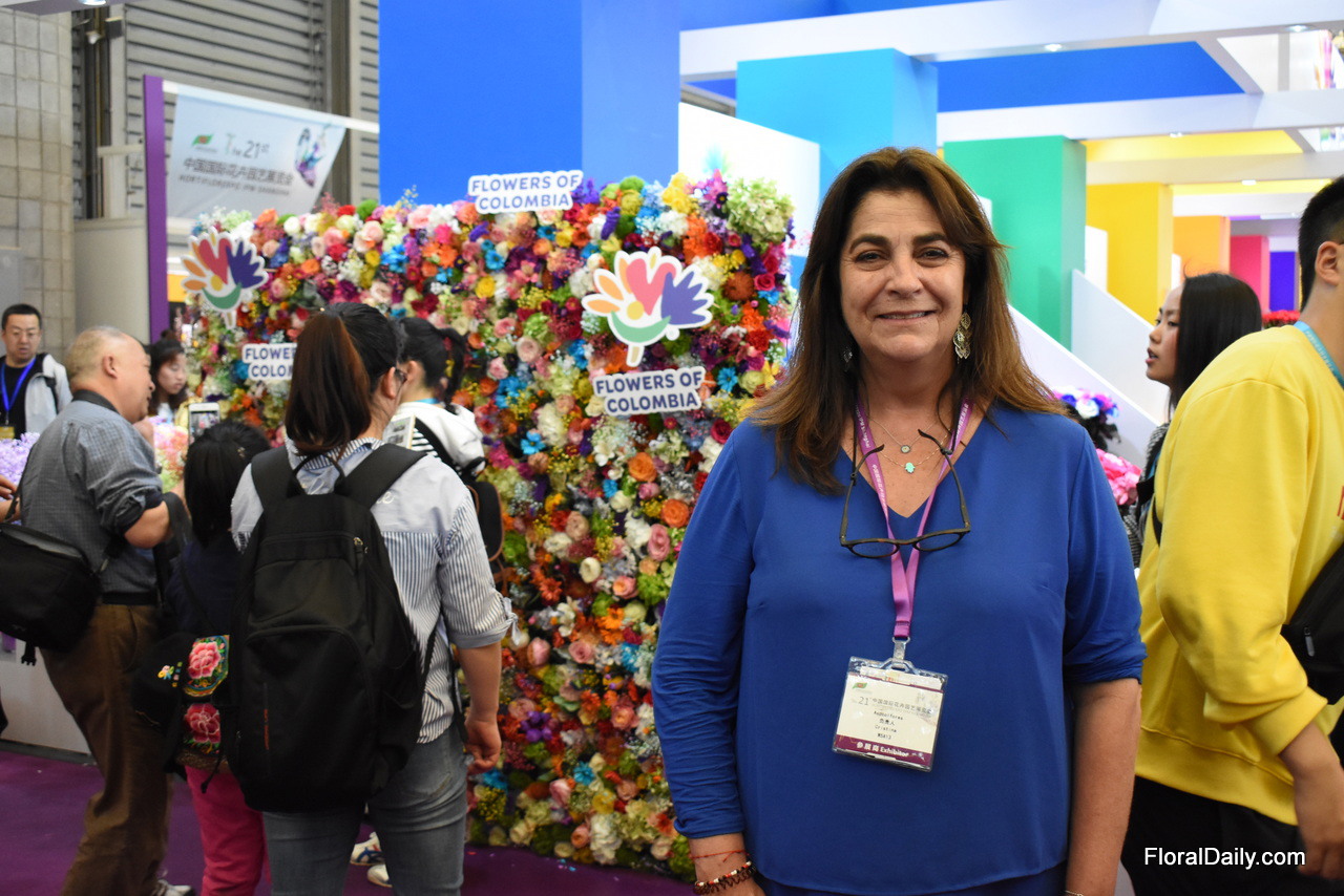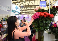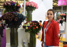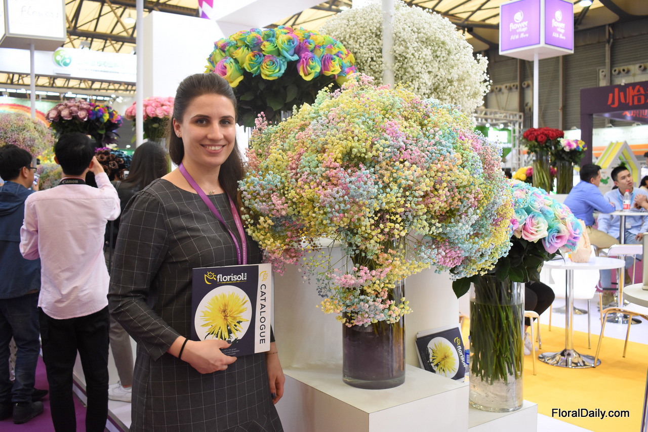 Tasya Kravchenko of Florisol. At the Pro Ecuador booth, they present their tinted roses and gypsophilas. They are eager to export to China and so far, the tinted gypsophila attracted the most attention.