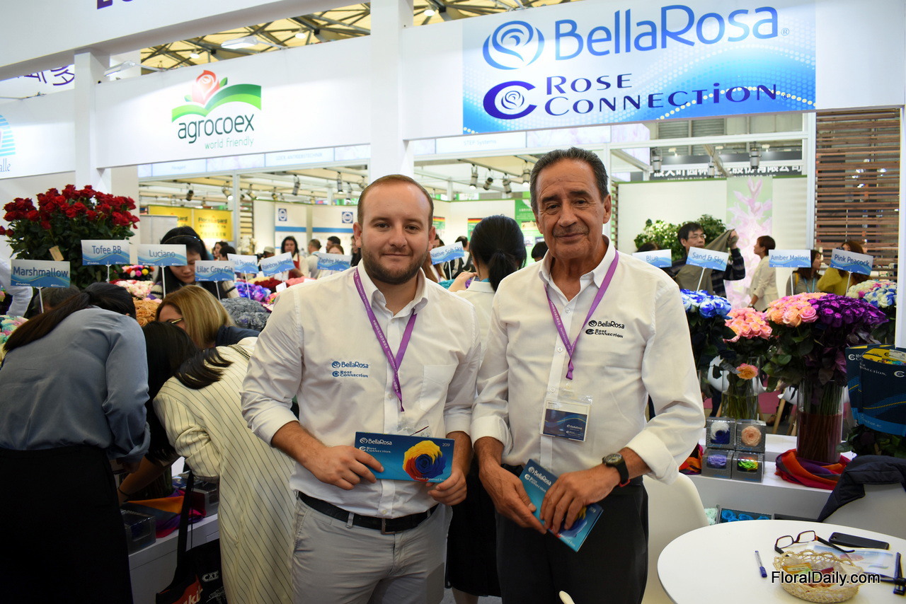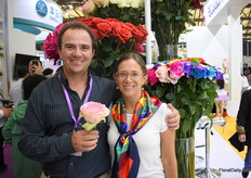Guillermo and Mariana Bustamante of Sacha Rose presenting their painted and natural roses. They are one of the highest farms in Ecuador and are based at an altitude of 3,200 meters above sea level. This enables them to produce large head sizes and long stems. Their current main market is Russia, but according to Guillermo, this market is not always stable and the Chinese is growing. That's why they are exploring the Chinese market for several years now.