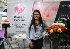 Maria Jose Vascinez of Rosaprima, one of Ecuadorians largest rose farms. They are present at the Hortiflorexpo IPM in China for the first time to meet their current and new clients.