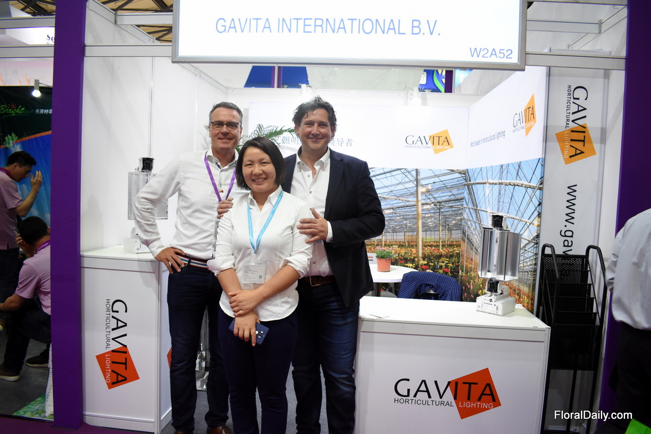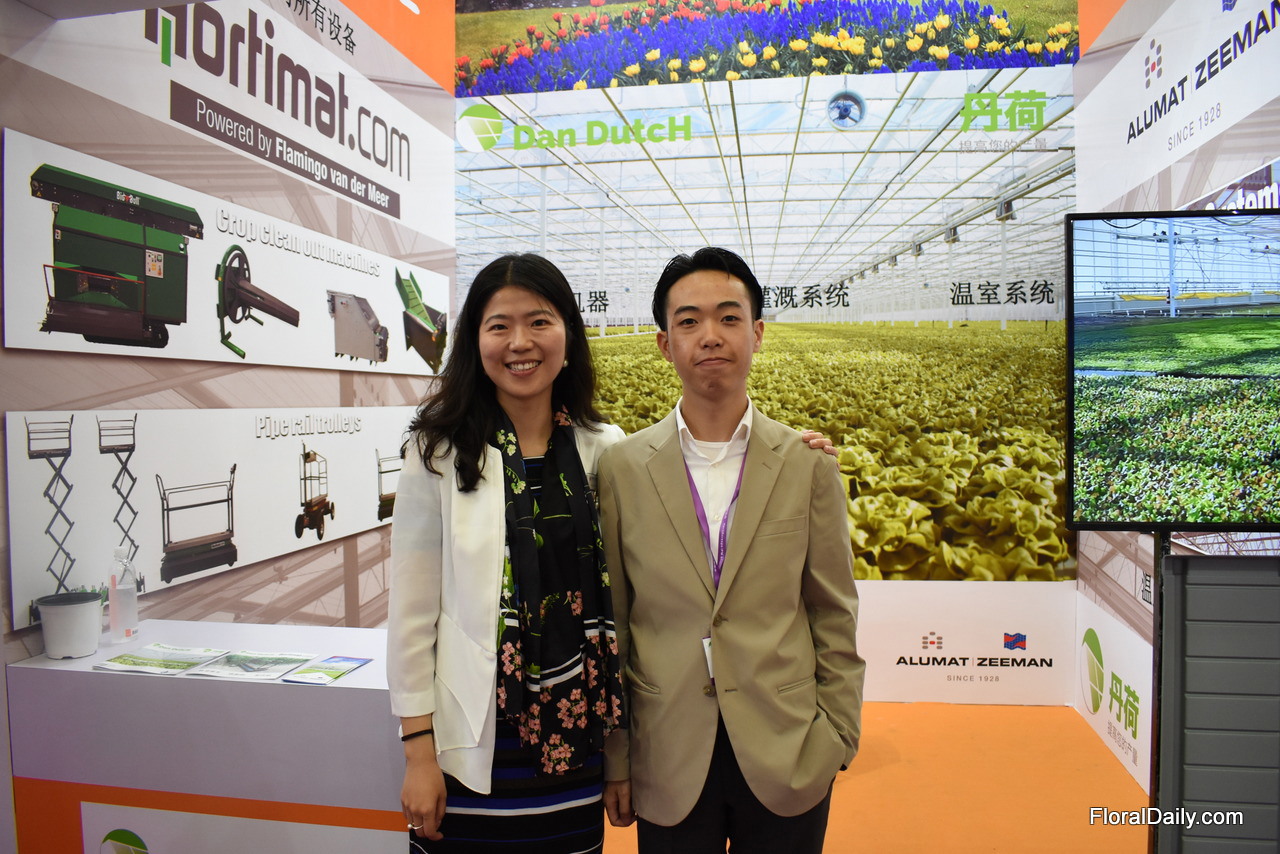 Ida Zhang, Savio Ma and Gerard Lentjes of Armada. Last year, they established Armada China in Shanghai and they are now for the first time exhibiting with their company at the Hortiflorexpo.