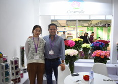 Francesco Torri and Vera Fong (interpreter) of Cananville. He presented his roses at the Expoflores booth and is eager to increase his sales volumes to the Chinese market. They started to supply this market in 2014.
