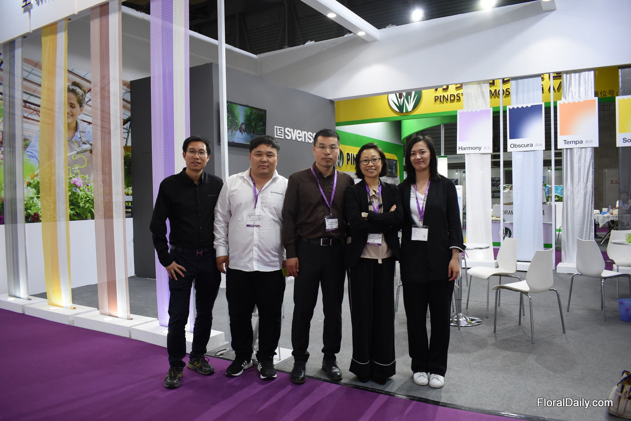 The team of Svensson presenting their Decor Harmony screens, available in four colors. It has the same characteristics as the traditional Harmony screen, but these give the smaller grower/garden centers a bit more color in the greenhouse.