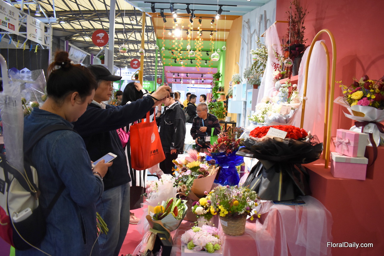 The booth of JD.com, one of China’s biggest online retailers. They will soon start to sell flowers online, which is quite a big thing.